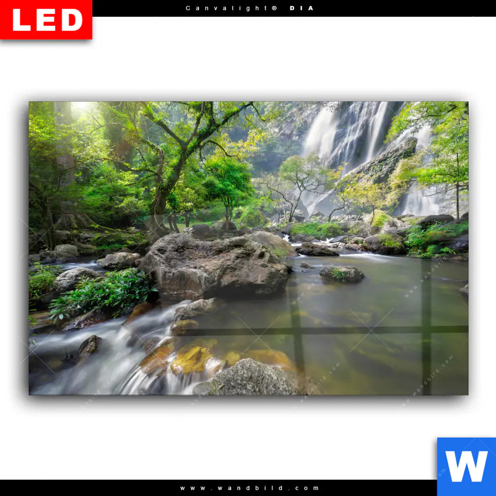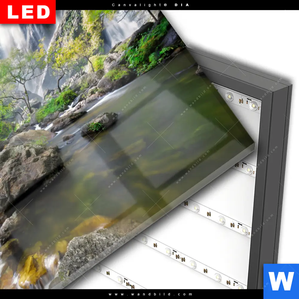 Wechselmotiv Acrylglas Canvalight® DIA | Felsenbach im Regenwald | Querformat
