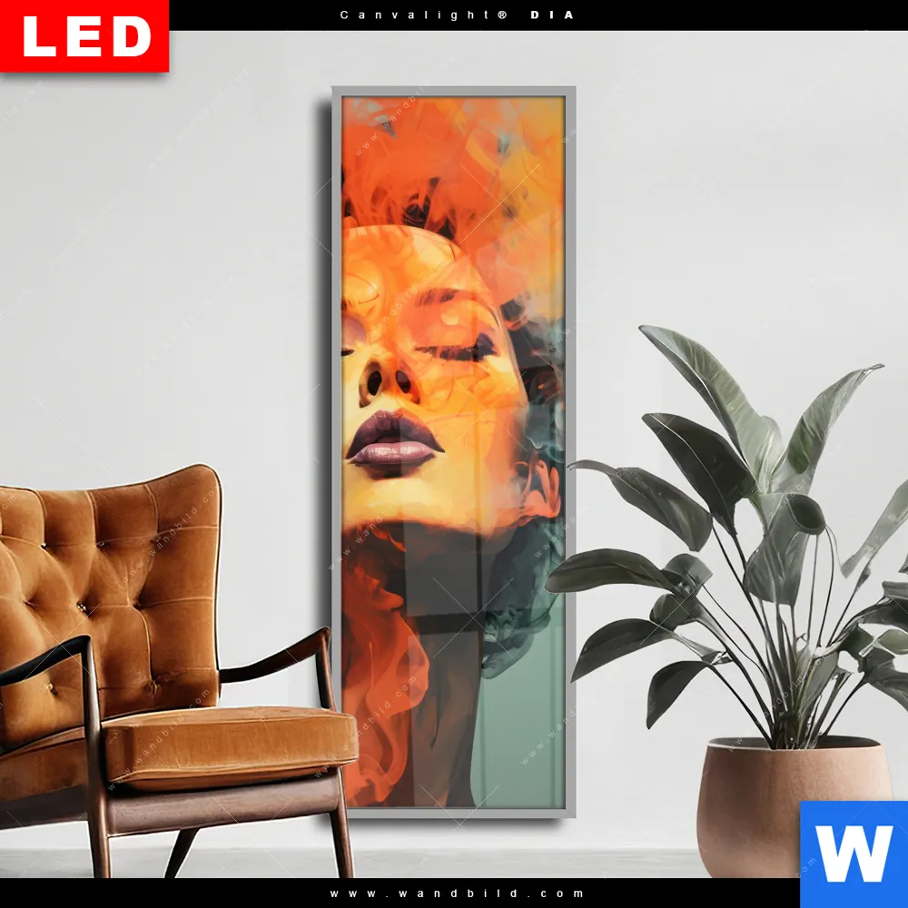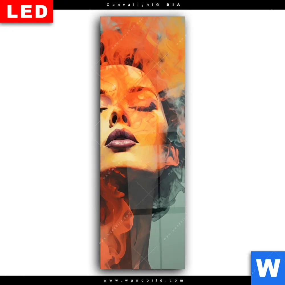 Wechselmotiv Acrylglas Canvalight® DIA | Frau mit buntem Rauch | Schmal