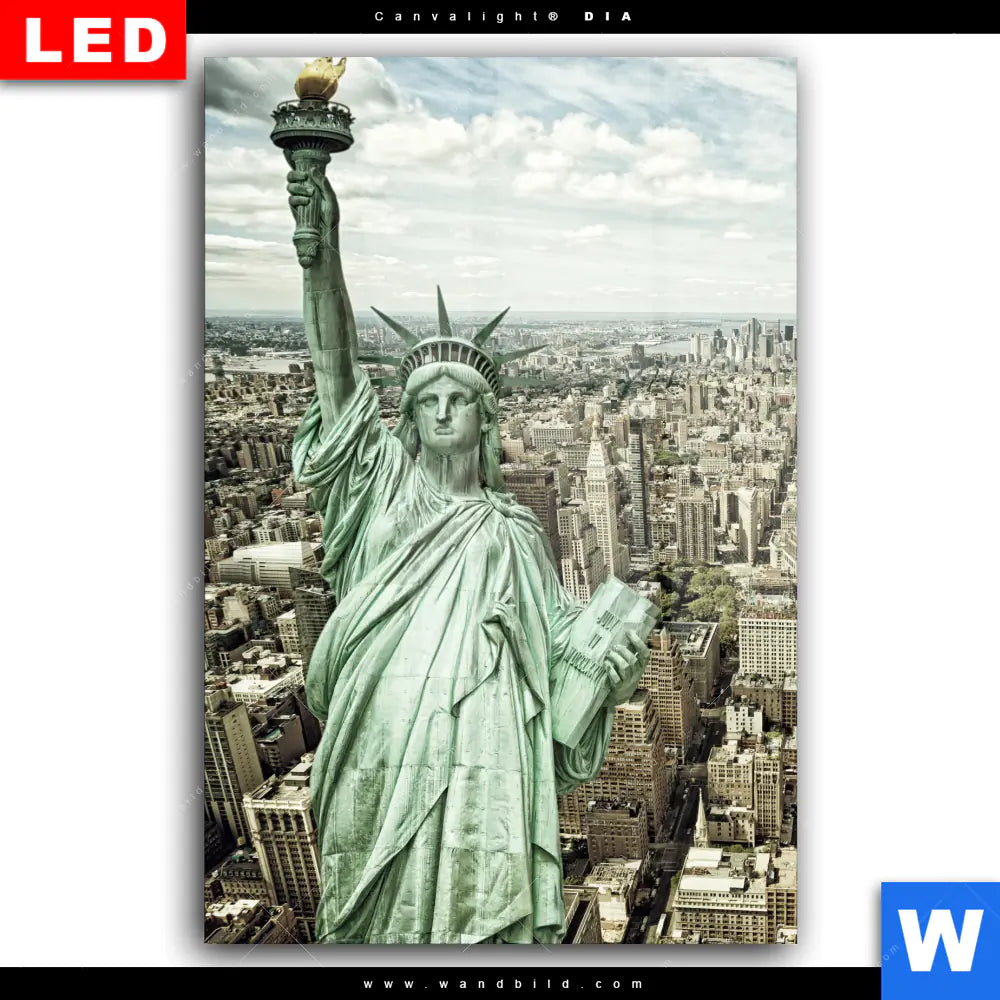 Wechselmotiv Acrylglas Canvalight® DIA | Freiheit über Manhattan | Hochformat
