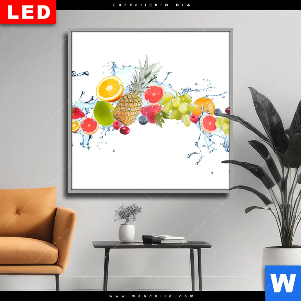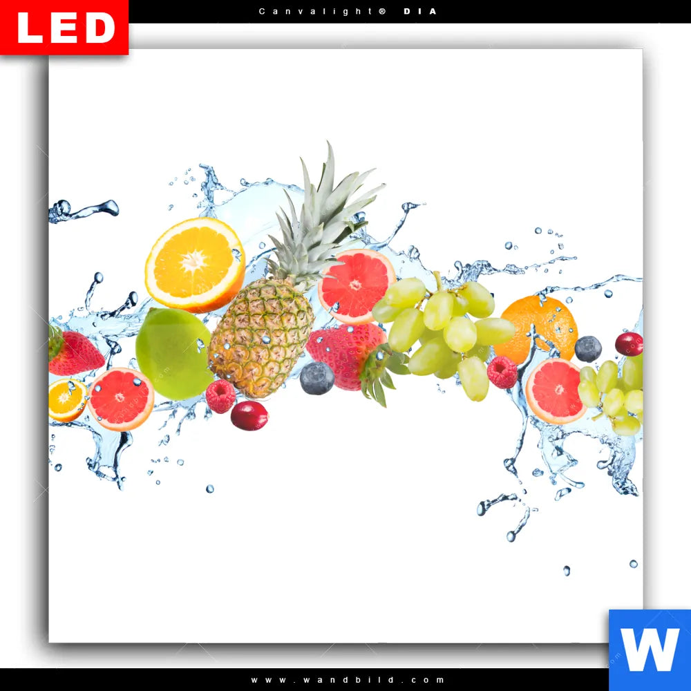 Wechselmotiv Acrylglas Canvalight® DIA | Früchte in Spritzwasser | Quadrat