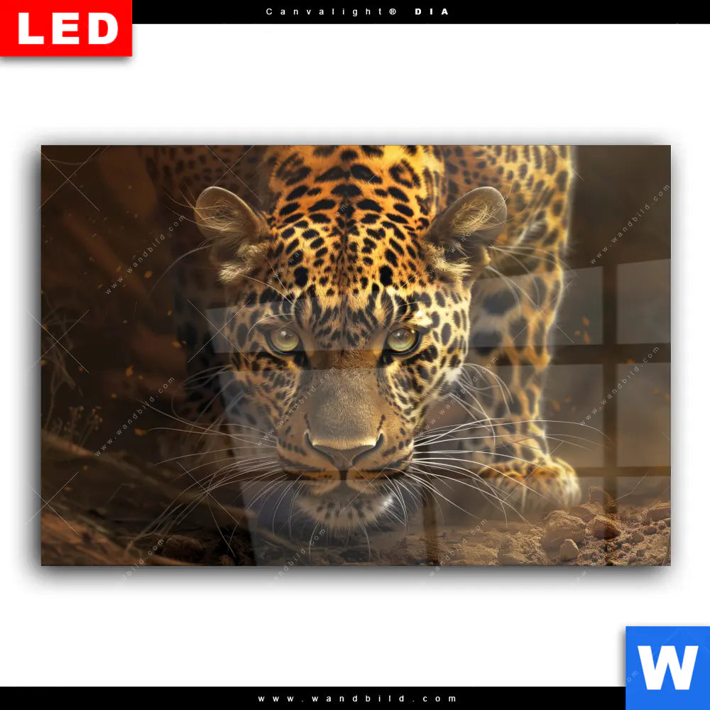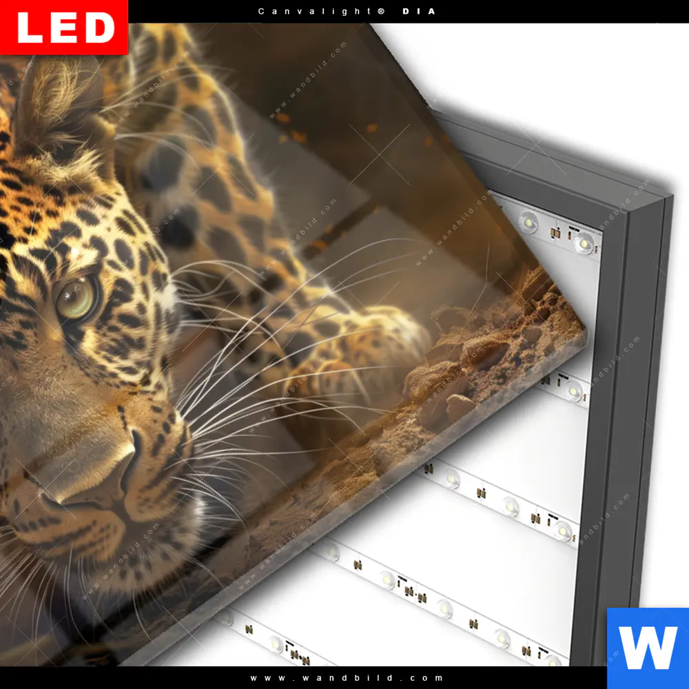 Wechselmotiv Acrylglas Canvalight® DIA | Geheimnisvoller Leopard | Querformat