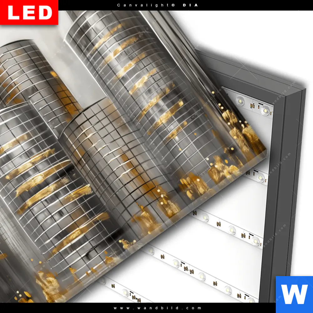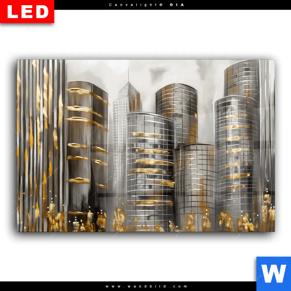 Wechselmotiv Acrylglas Canvalight® DIA | Goldene Skyline Vision | Querformat