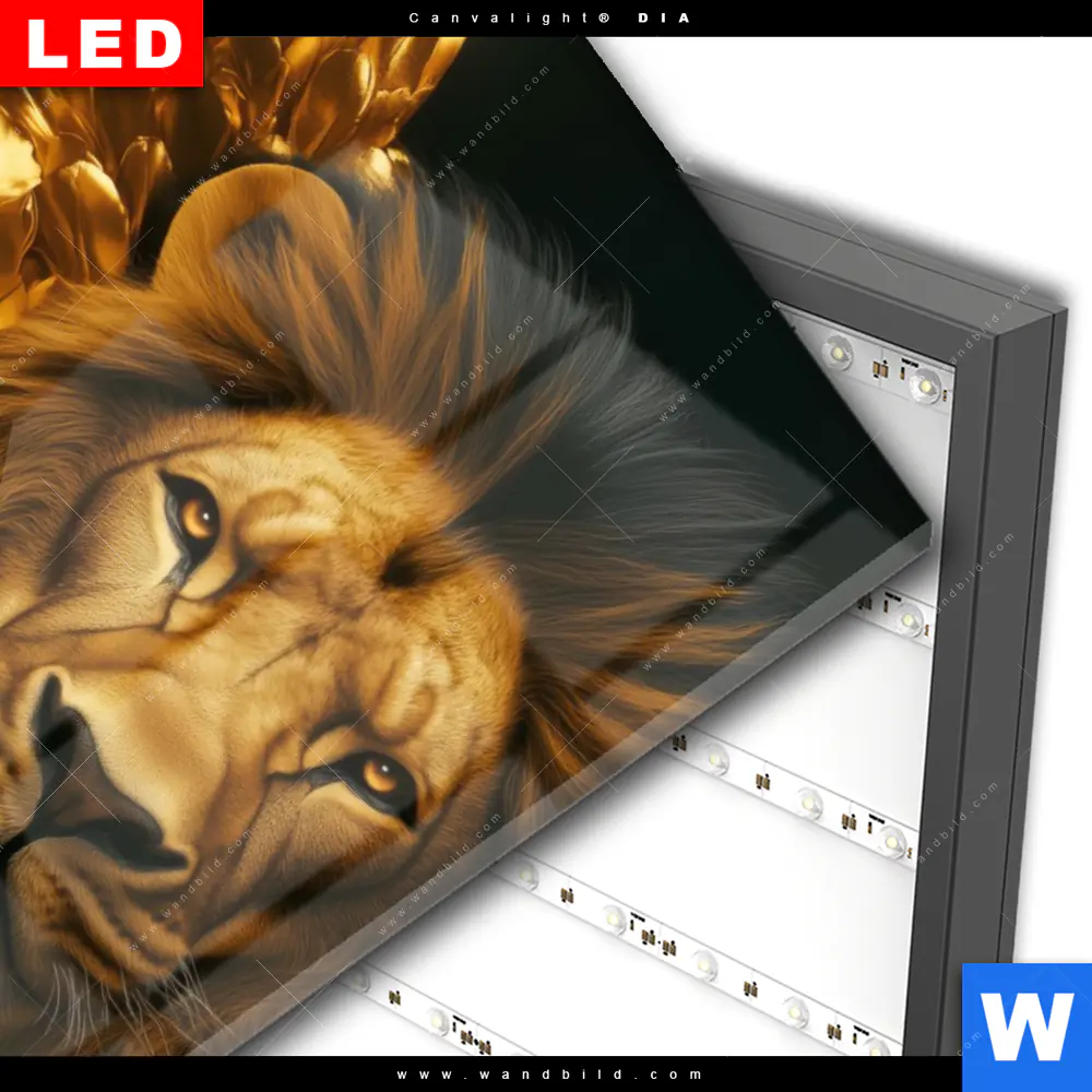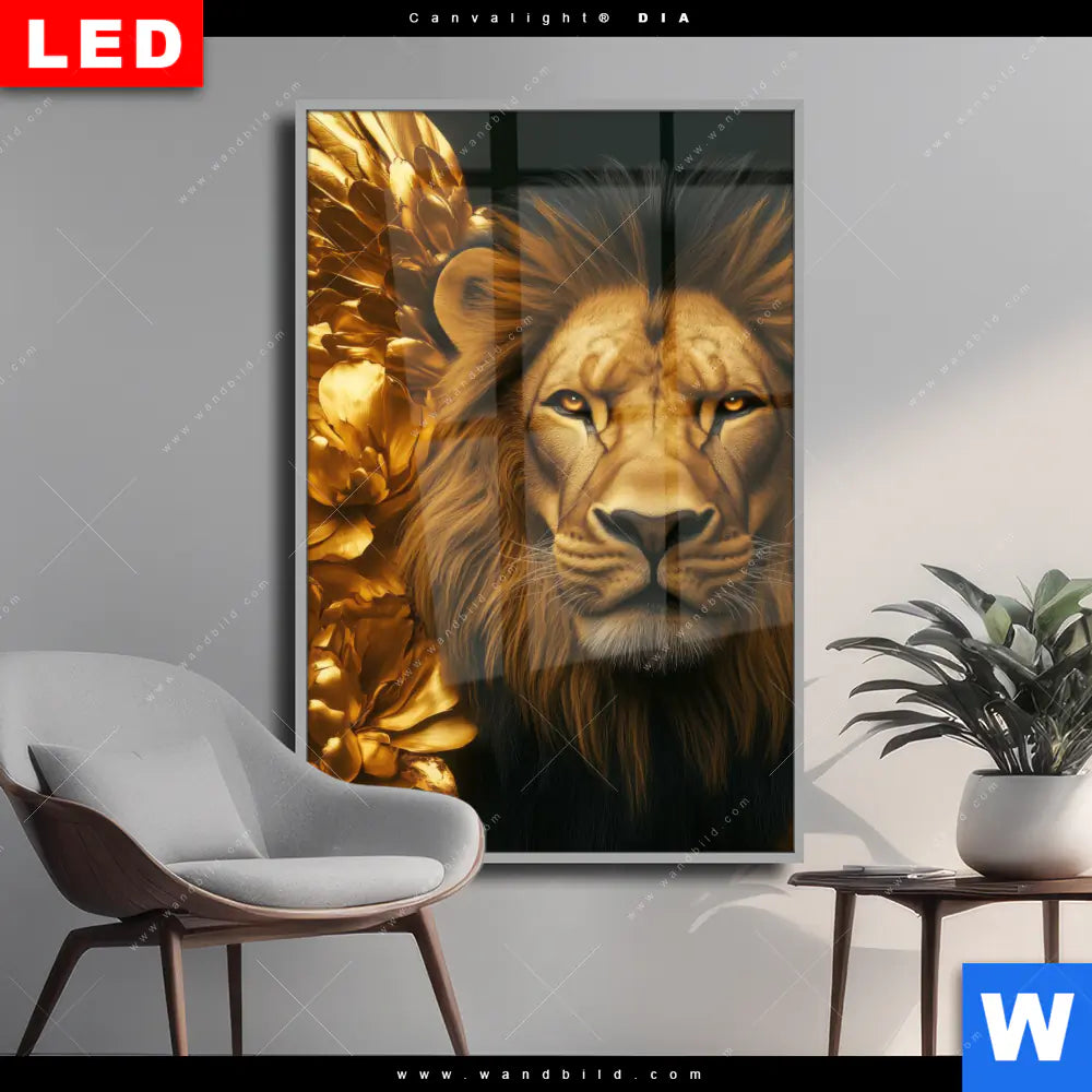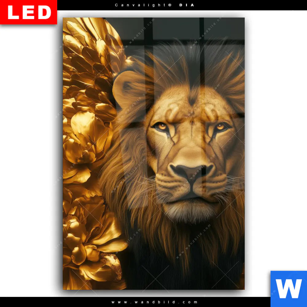 Wechselmotiv Acrylglas Canvalight® DIA | Goldener Löwe | Hochformat