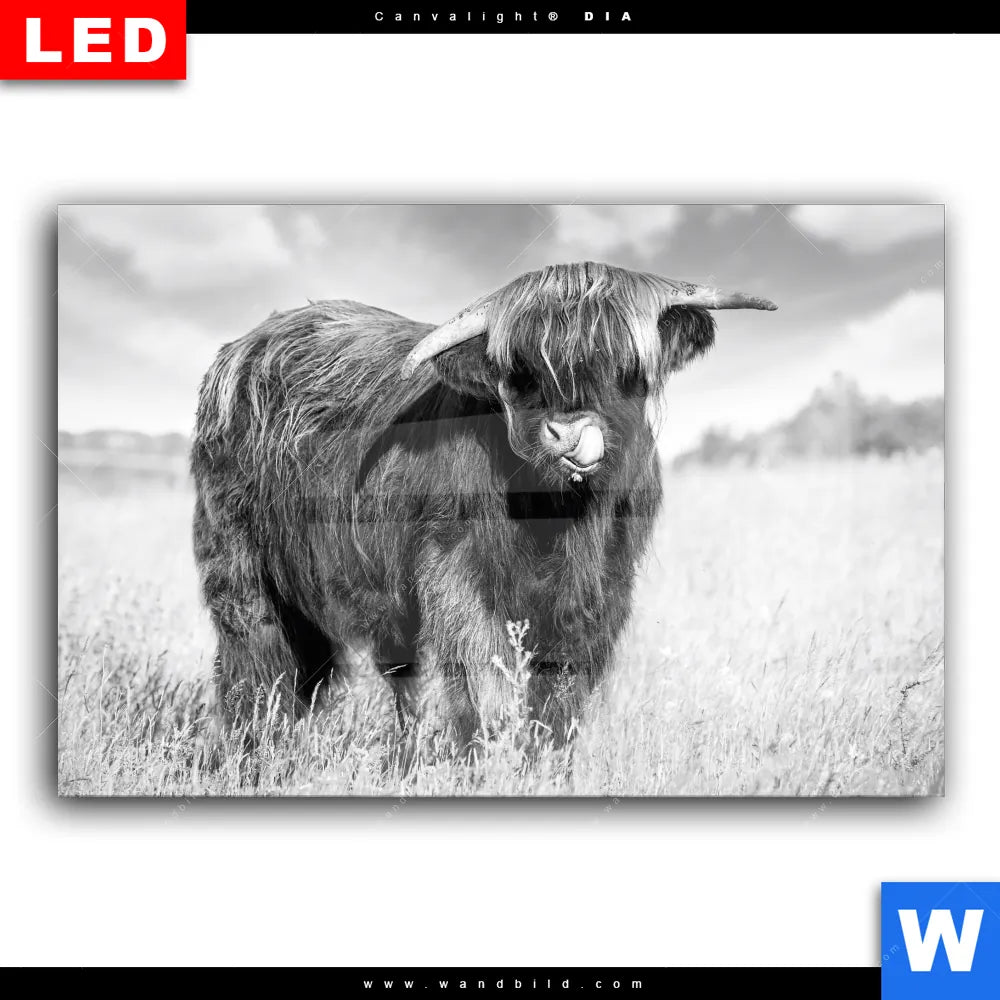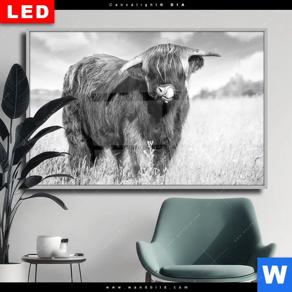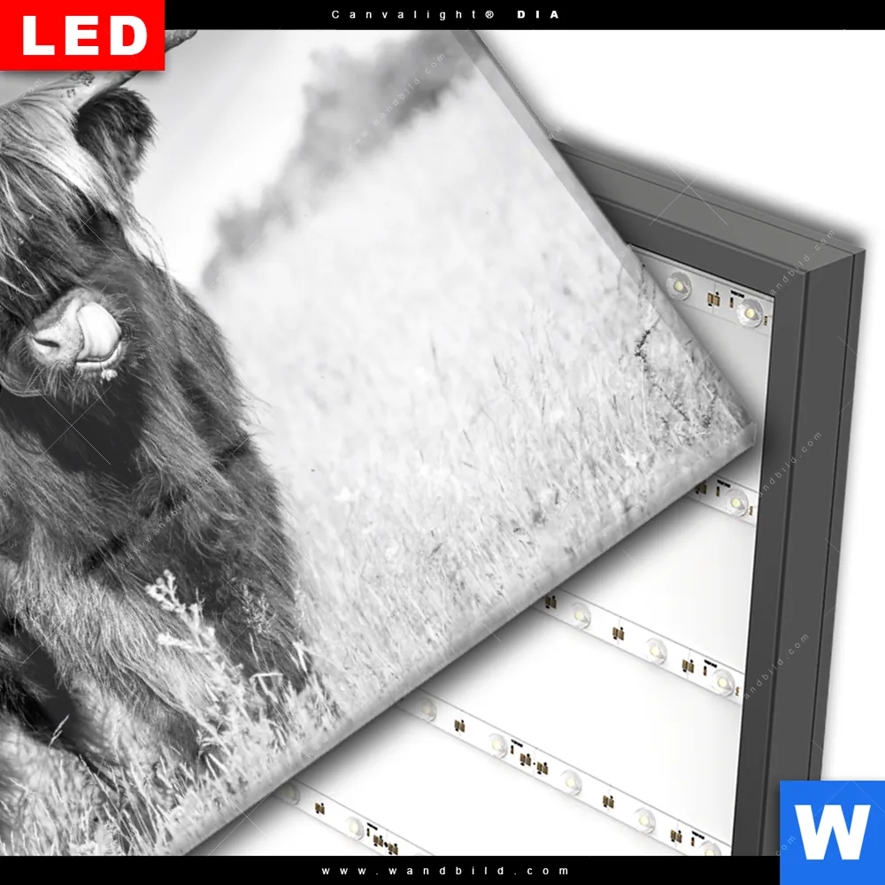 Wechselmotiv Acrylglas Canvalight® DIA | Hochlandkuh auf einer Wiese | Querformat