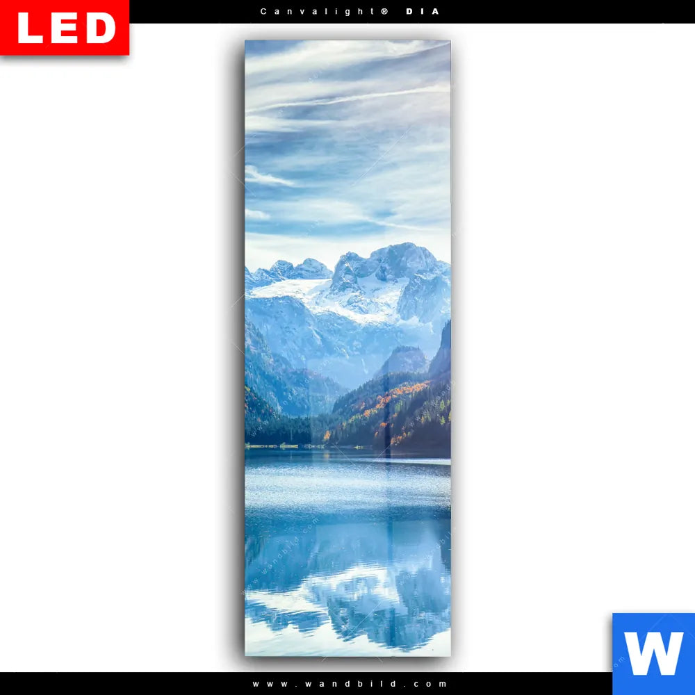 Wechselmotiv Acrylglas Canvalight® DIA | Idyllischer Bergsee im Gebirge | Schmal