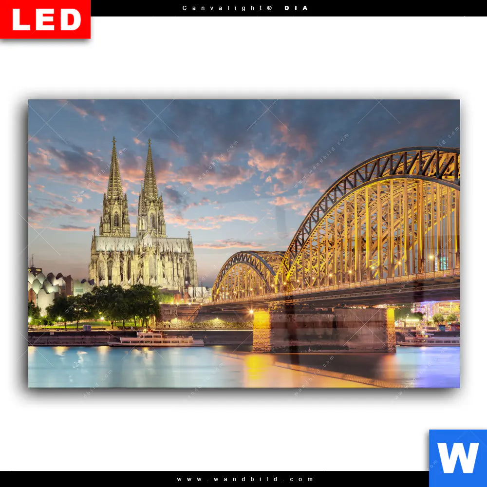 Wechselmotiv Acrylglas Canvalight® DIA | Kölner Dom bei Nacht | Querformat