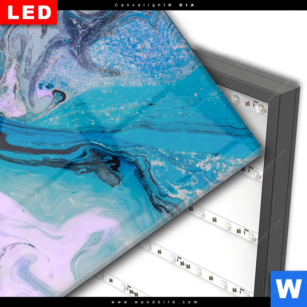 Wechselmotiv Acrylglas Canvalight® DIA | Liquid Marmor Türkis Flieder | Querformat
