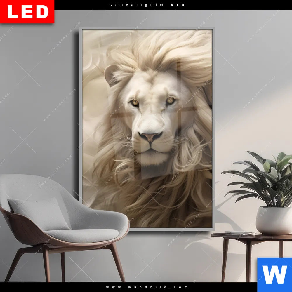 Wechselmotiv Acrylglas Canvalight® DIA | Löwenkopf mit weißer Mähne | Hochformat