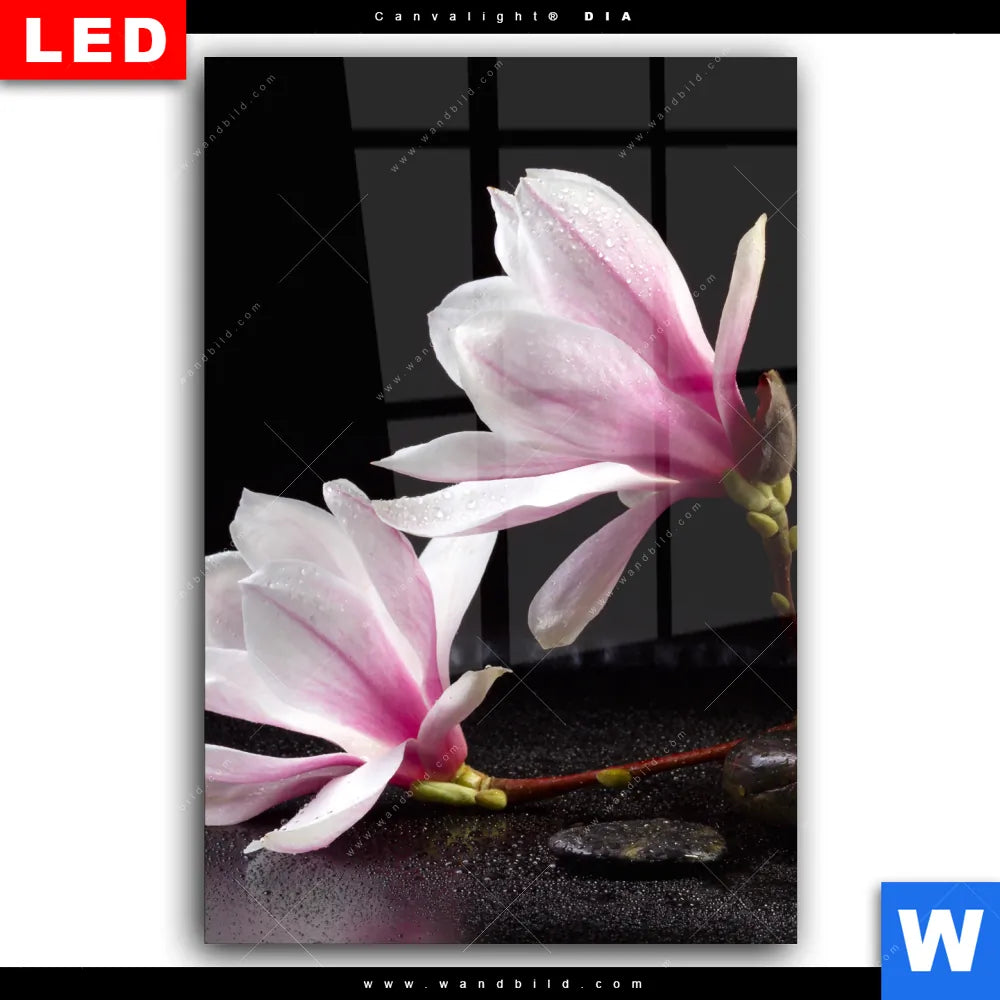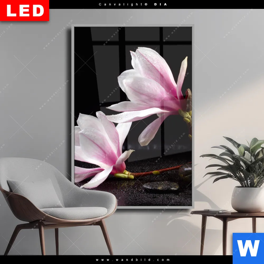 Wechselmotiv Acrylglas Canvalight® DIA | Magnolien & Zen Steine | Hochformat