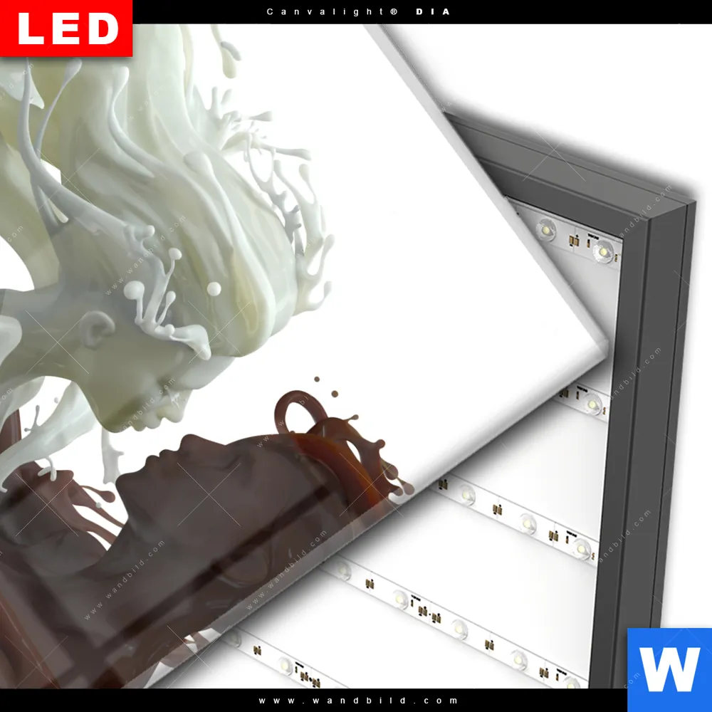 Wechselmotiv Acrylglas Canvalight® DIA | Milch küsst Schokolade | Quadrat