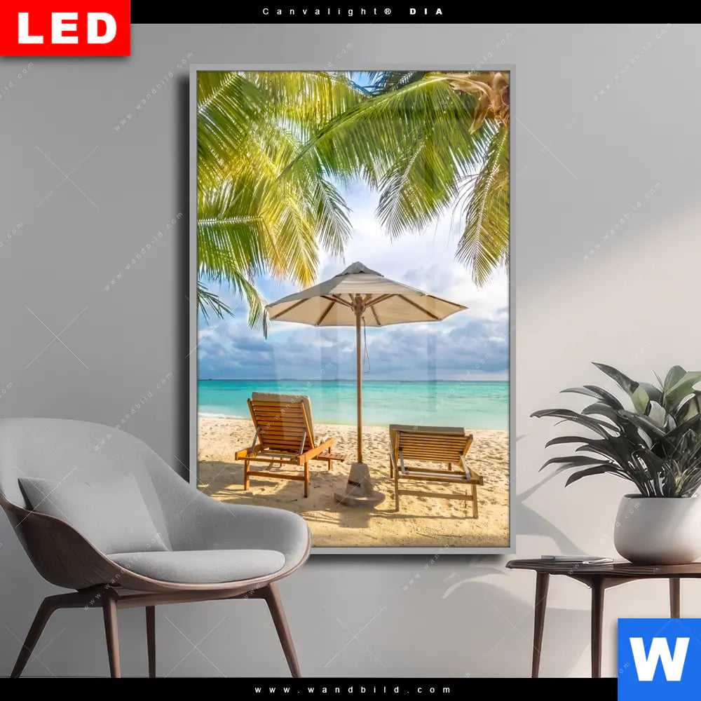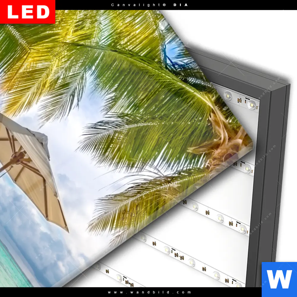 Wechselmotiv Acrylglas Canvalight® DIA | Paradies unter Palmen | Hochformat