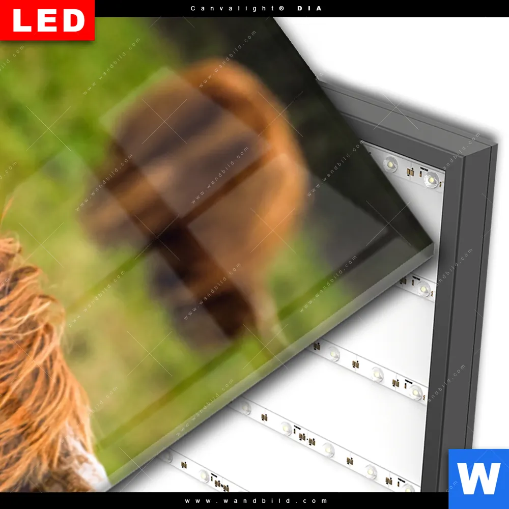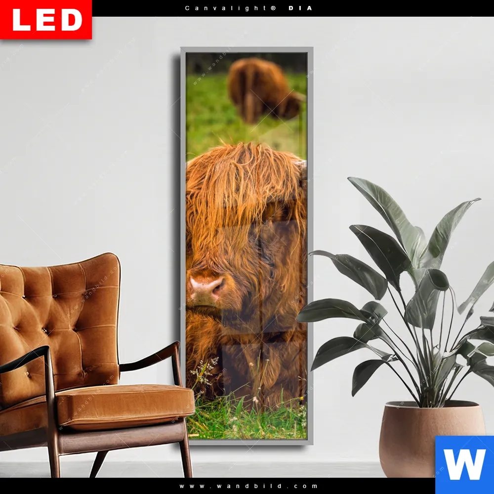 Wechselmotiv Acrylglas Canvalight® DIA | Rind in den schottischen Highlands | Schmal