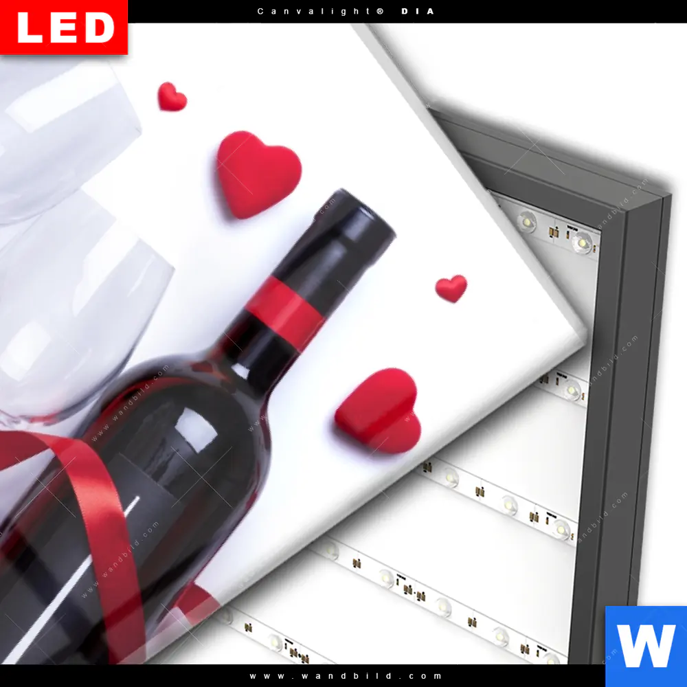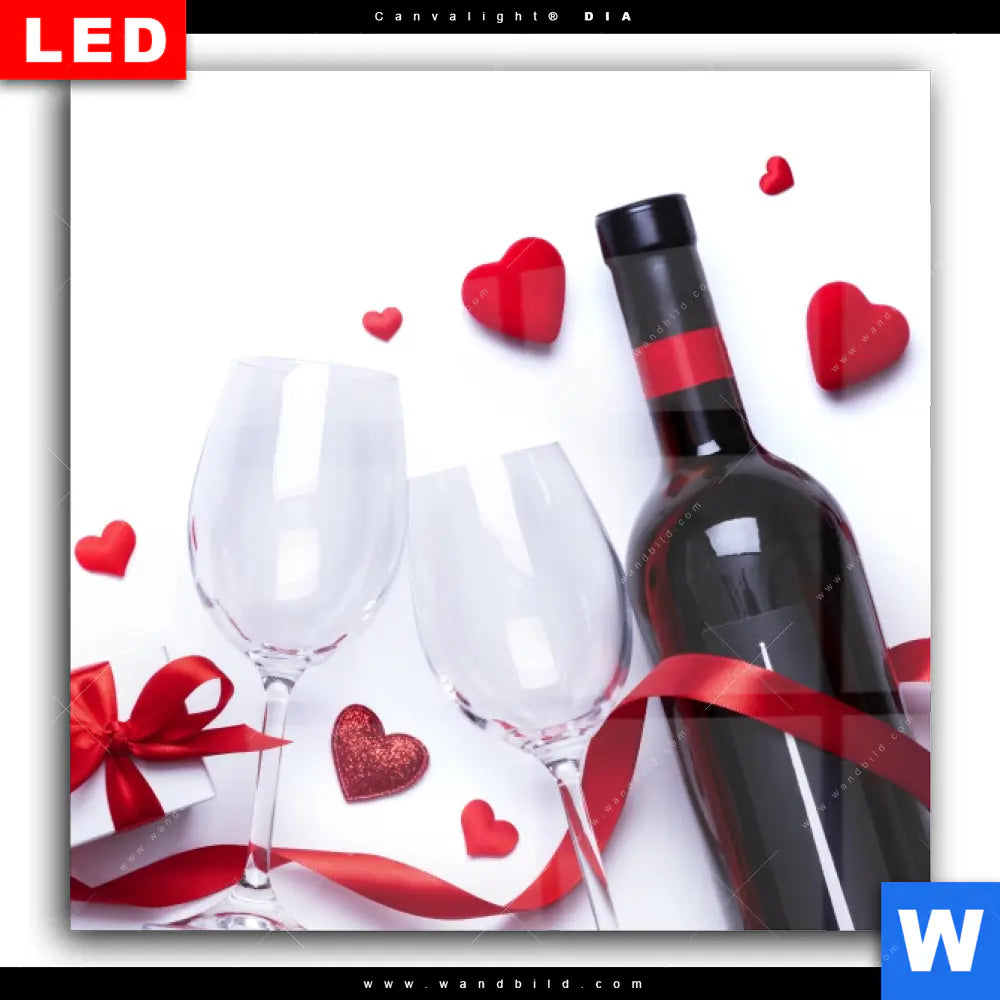 Wechselmotiv Acrylglas Canvalight® DIA | Romantik mit Rotwein | Quadrat
