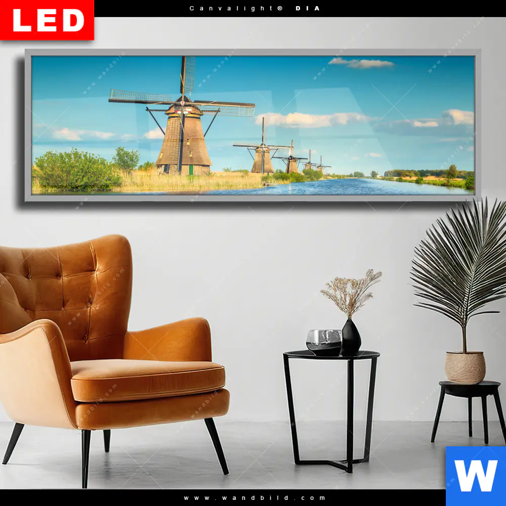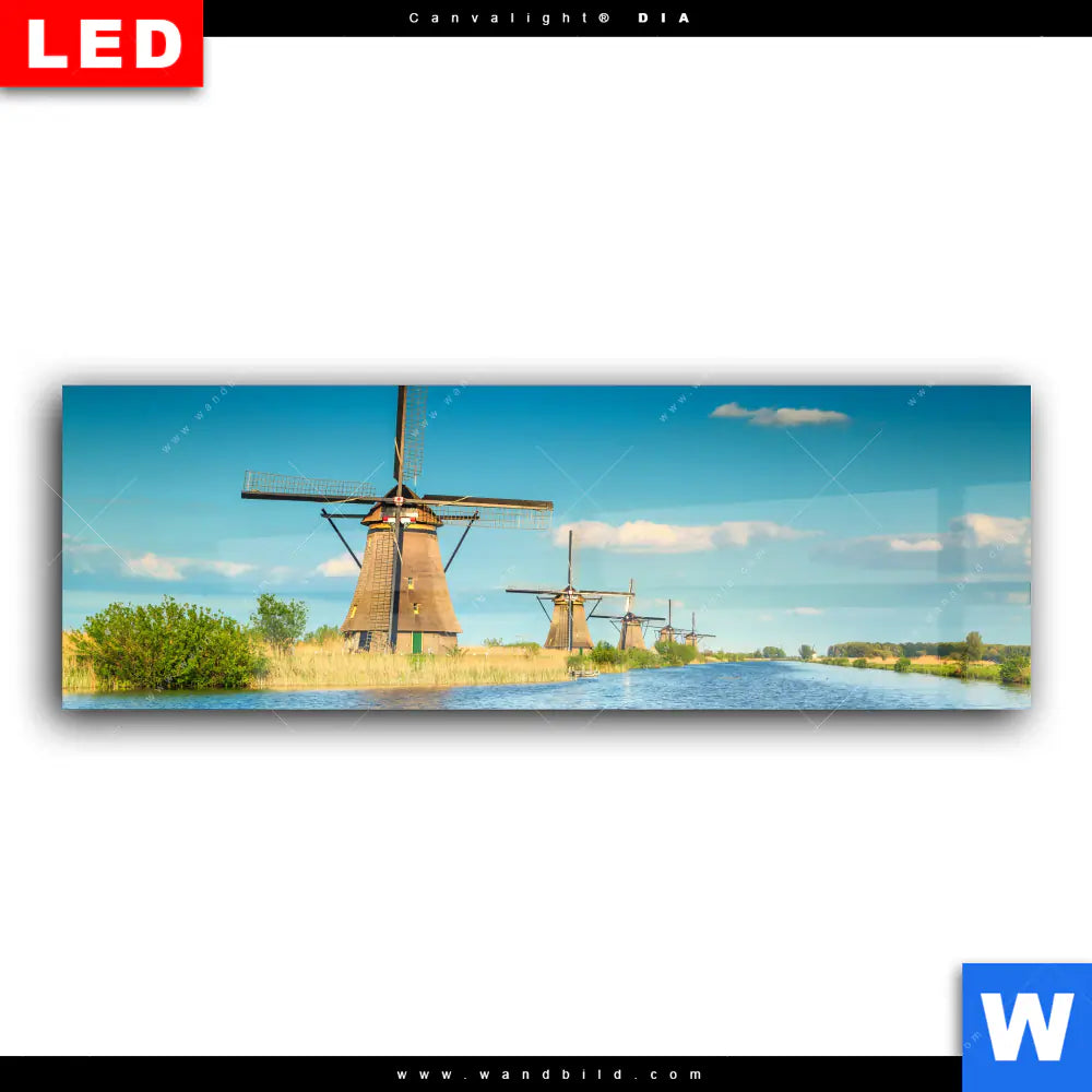 Wechselmotiv Acrylglas Canvalight® DIA | Romantik zwischen Windmühlen | Panorama