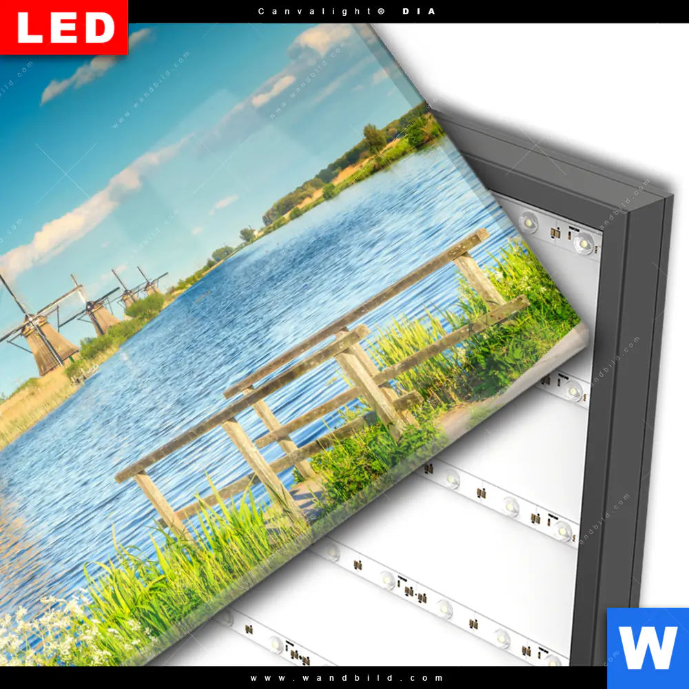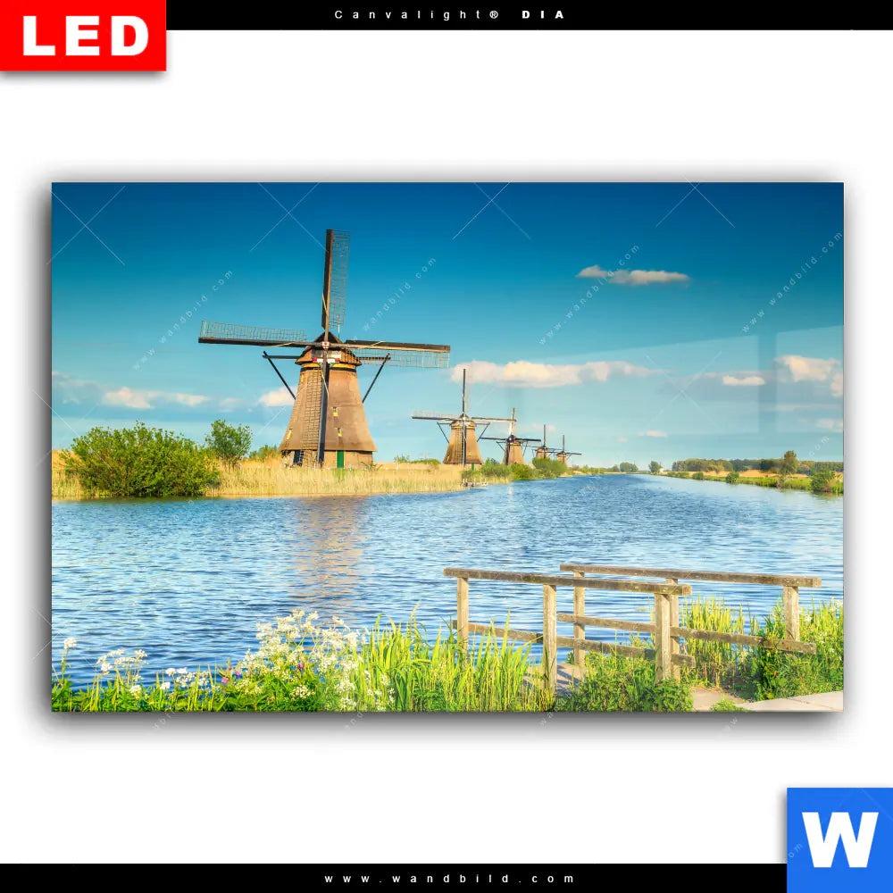Wechselmotiv Acrylglas Canvalight® DIA | Romantik zwischen Windmühlen | Querformat