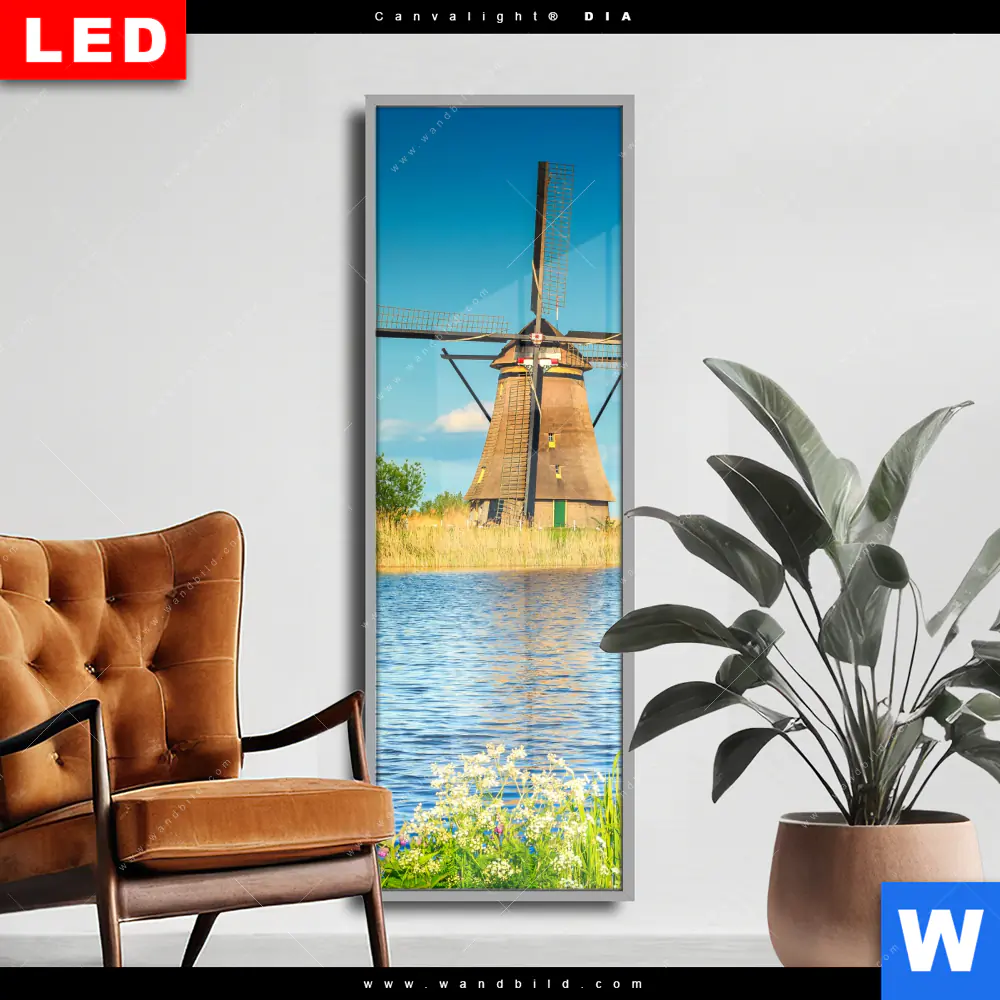 Wechselmotiv Acrylglas Canvalight® DIA | Romantik zwischen Windmühlen | Schmal