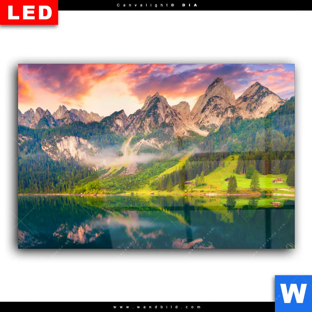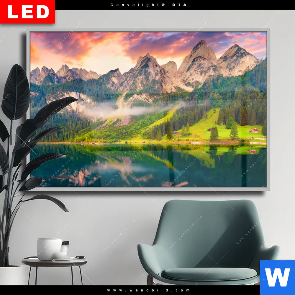Wechselmotiv Acrylglas Canvalight® DIA | Sonnenaufgang am Bergsee | Querformat