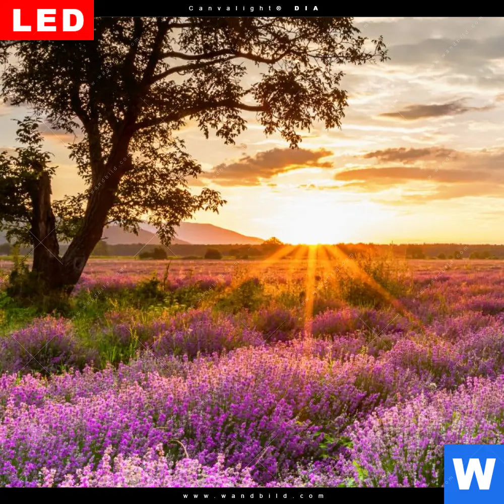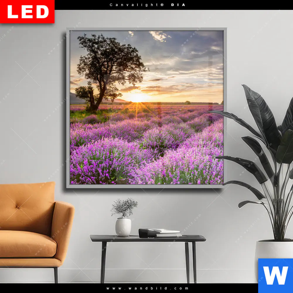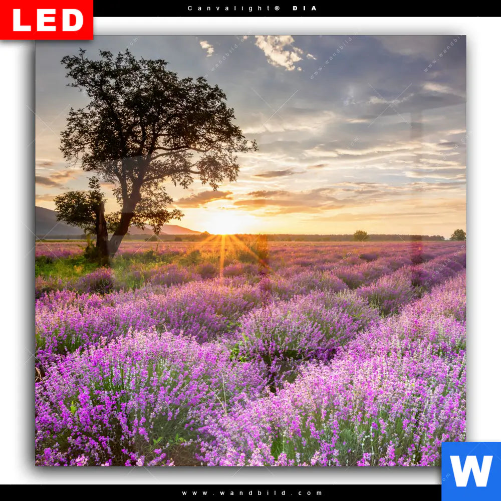 Wechselmotiv Acrylglas Canvalight® DIA | Sonnenaufgang im Lavendelfeld | Quadrat