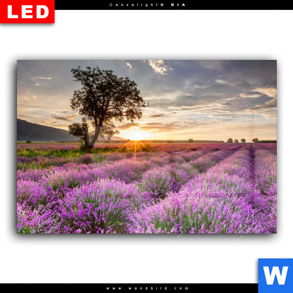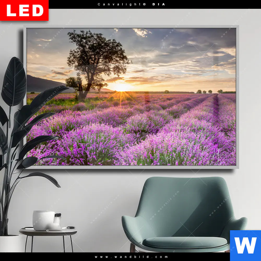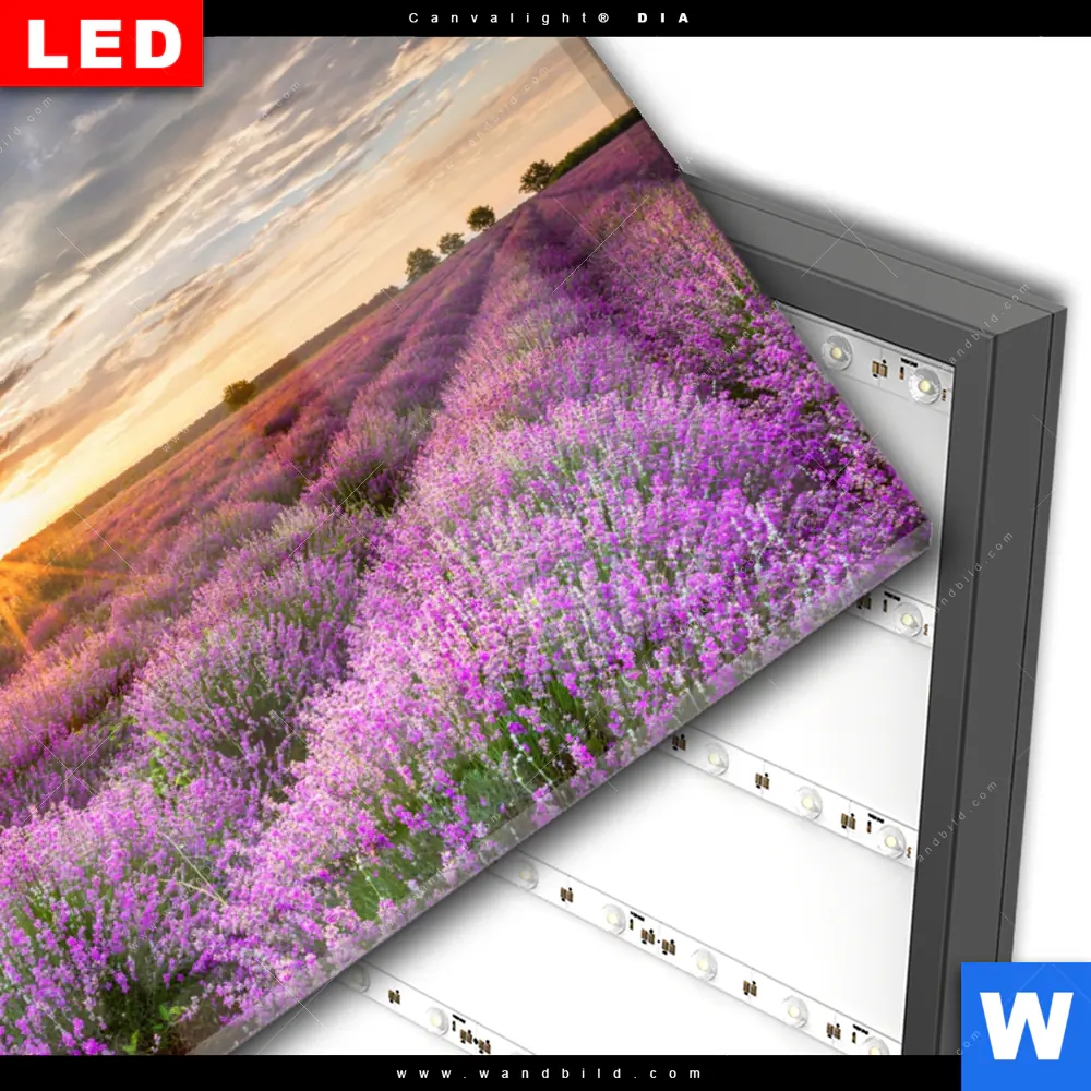 Wechselmotiv Acrylglas Canvalight® DIA | Sonnenaufgang im Lavendelfeld | Querformat