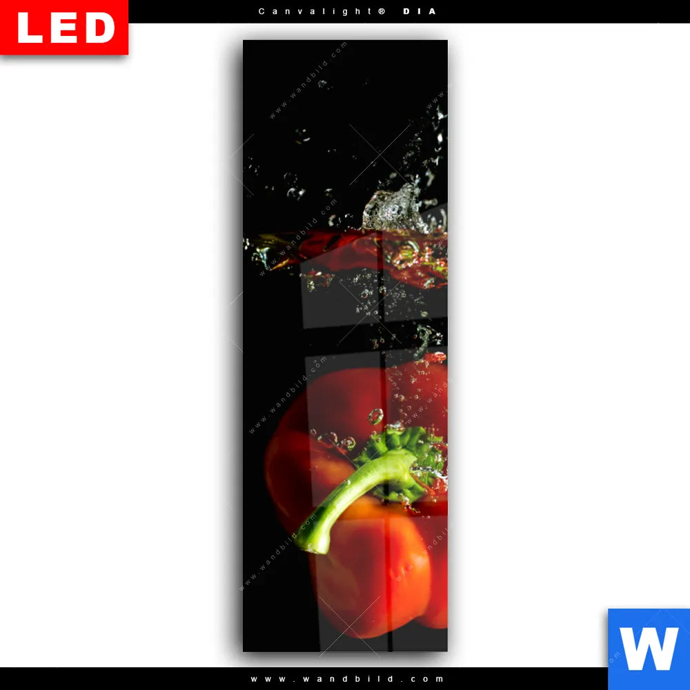 Wechselmotiv Acrylglas Canvalight® DIA | Spritzer von Paprika beim fallen ins Wasser | Schmal