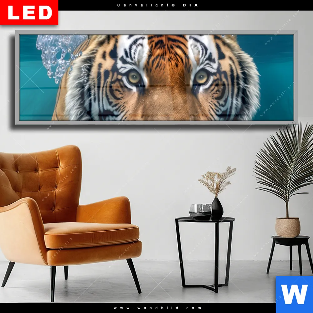Wechselmotiv Acrylglas Canvalight® DIA | Tauchender Tiger | Panorama