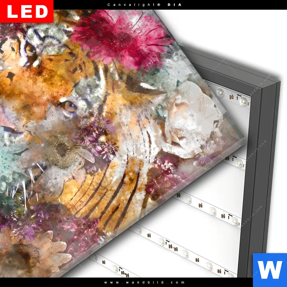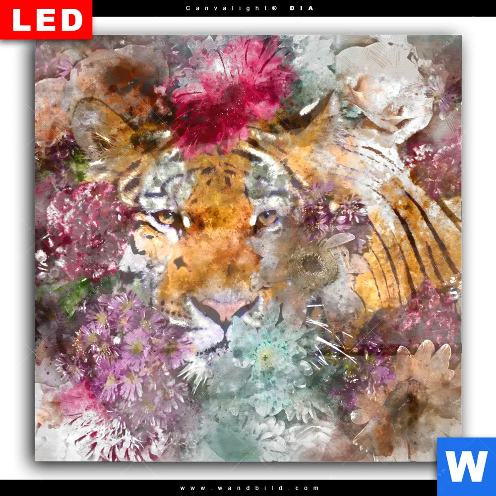 Wechselmotiv Acrylglas Canvalight® DIA | Tiger & Blumen | Quadrat