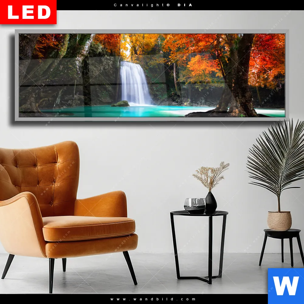 Wechselmotiv Acrylglas Canvalight® DIA | Wasserfall im Wald | Panorama