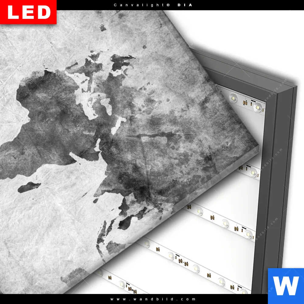 Wechselmotiv Acrylglas Canvalight® DIA | Weltkarte Grautöne | Quadrat