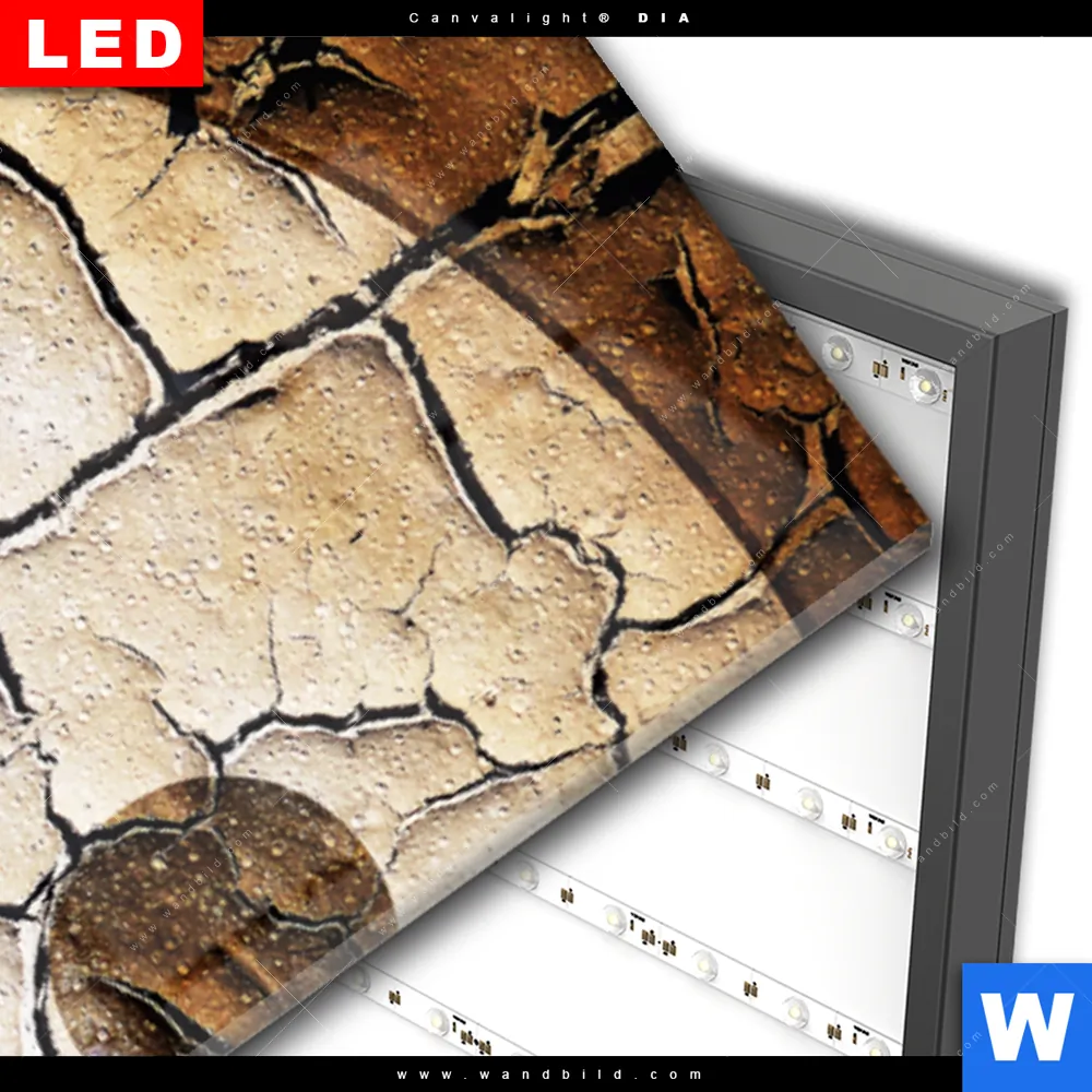 Wechselmotiv Acrylglas Canvalight® DIA | Yin Yang auf rissiger Erde | Schmal