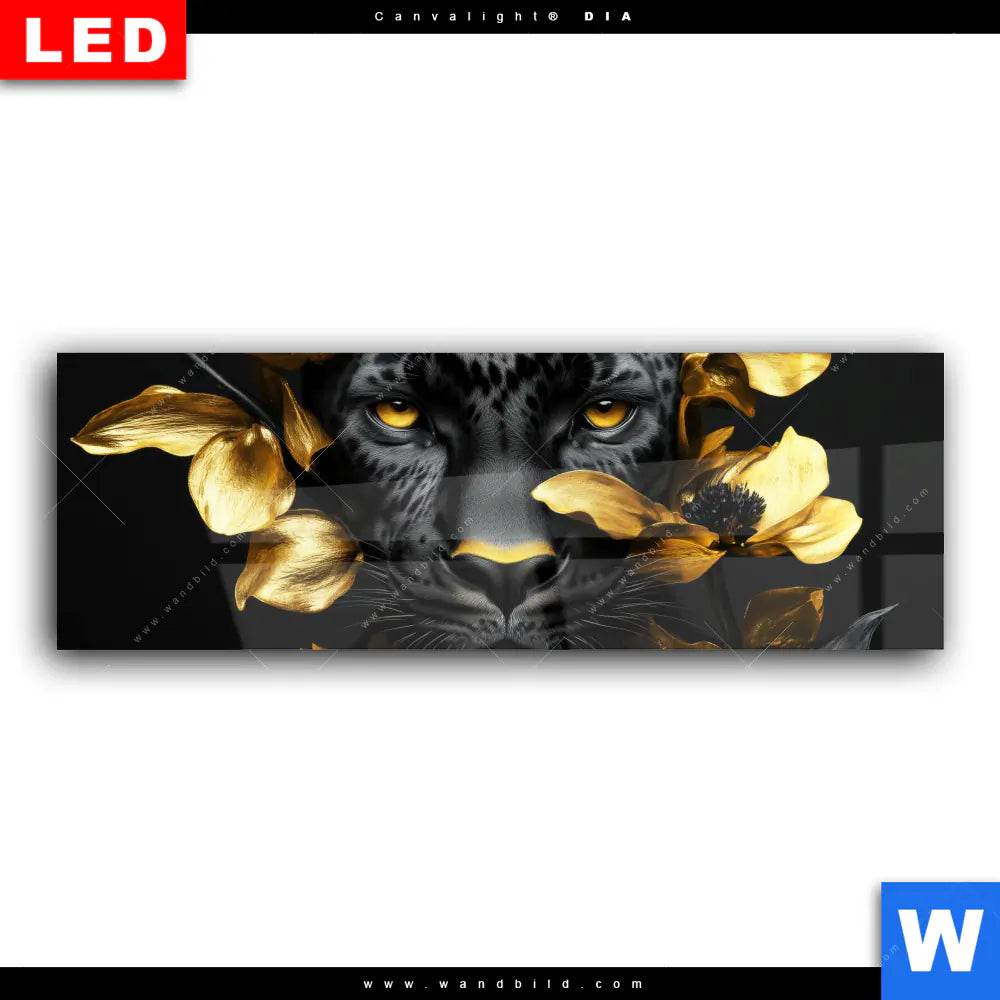 Wechselmotiv Acrylglas Canvalight® DIA | Goldblumen & Panther | Panorama