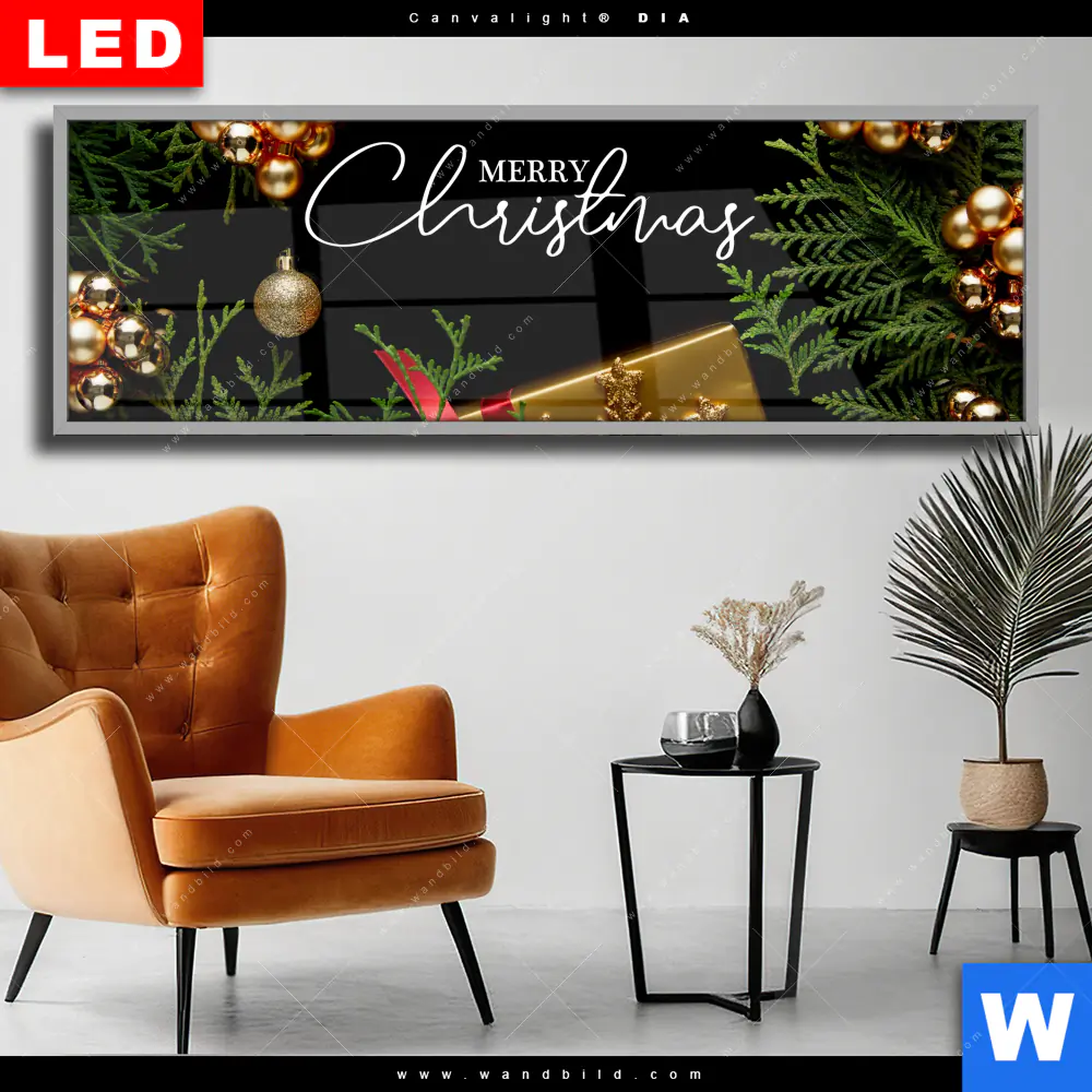 Wechselmotiv Acrylglas Canvalight® DIA | Goldene Weihnachtsgrüße | Panorama