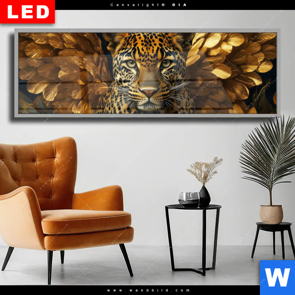 Wechselmotiv Acrylglas Canvalight® DIA | Goldflügel-Leopard | Panorama
