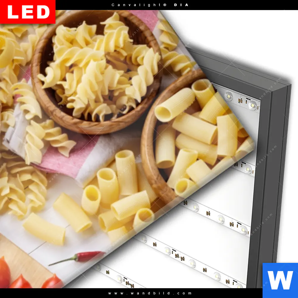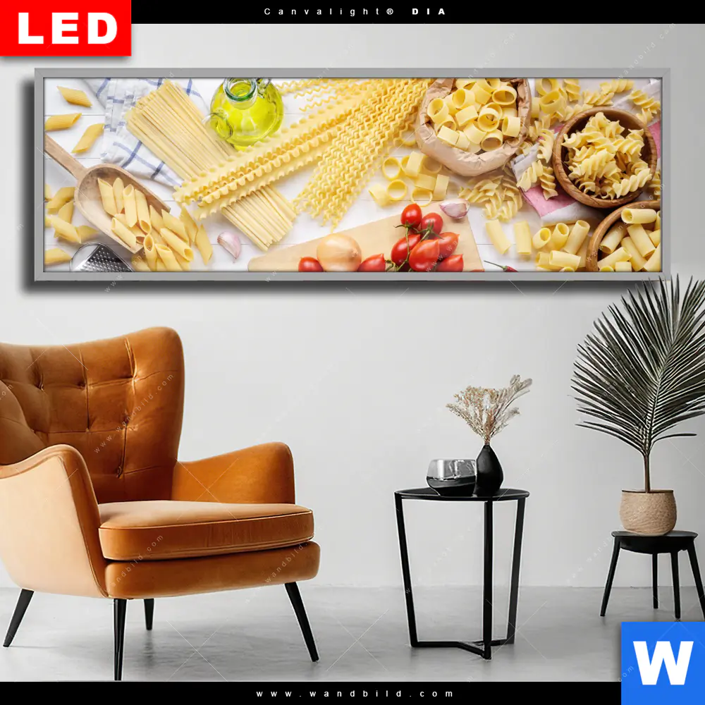 Wechselmotiv Acrylglas Canvalight® DIA | Italienische Pasta Vielfalt | Panorama