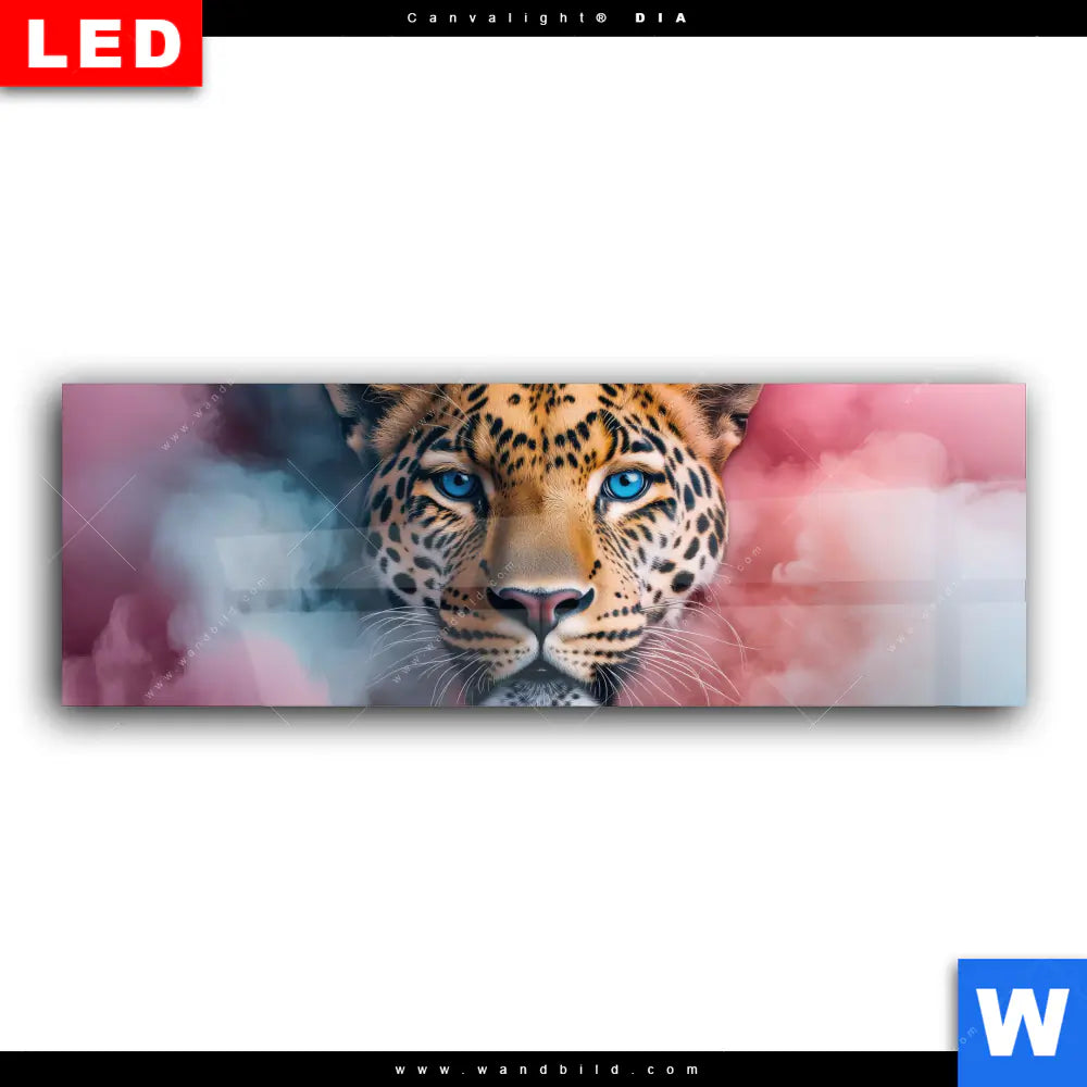 Wechselmotiv Acrylglas Canvalight® DIA | Leopard im Farbnebel | Panorama