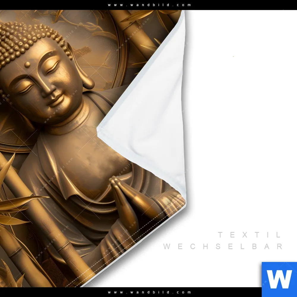 Wechselmotiv Textil | Goldener Buddha im Bambuswald | Quadrat
