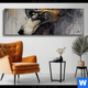Wechselmotiv Textil | Abstrakter Wolf in Gold und Grau | Hochformat