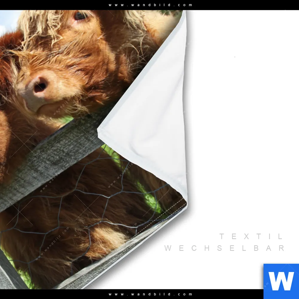 Wechselmotiv Textil | Drei Schottische Rinder | Querformat