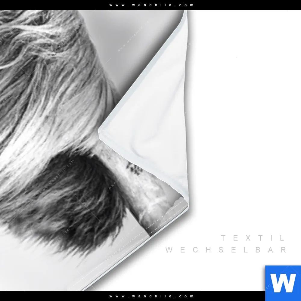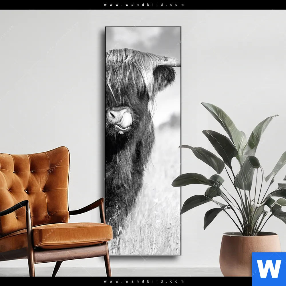 Wechselmotiv Textil | Hochlandkuh auf einer Wiese | Schmal