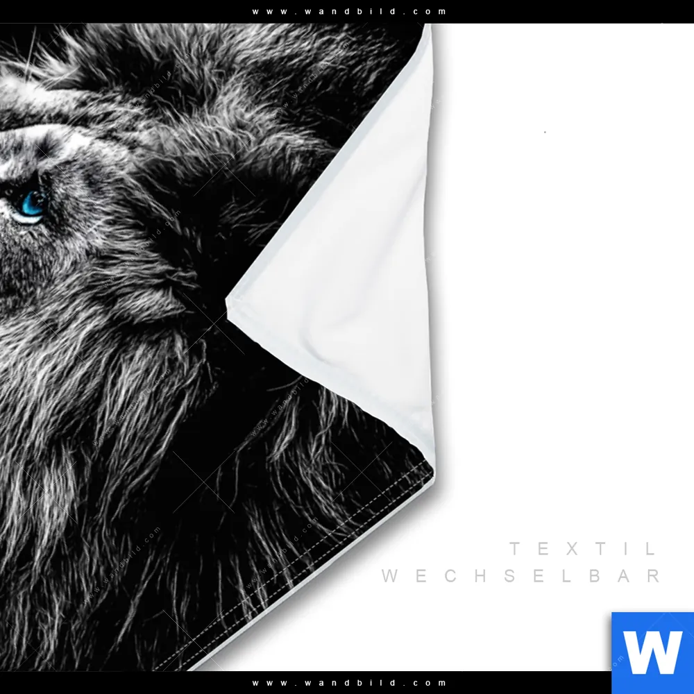 Wechselmotiv Textil | Löwe mit blauen Augen | Hochformat