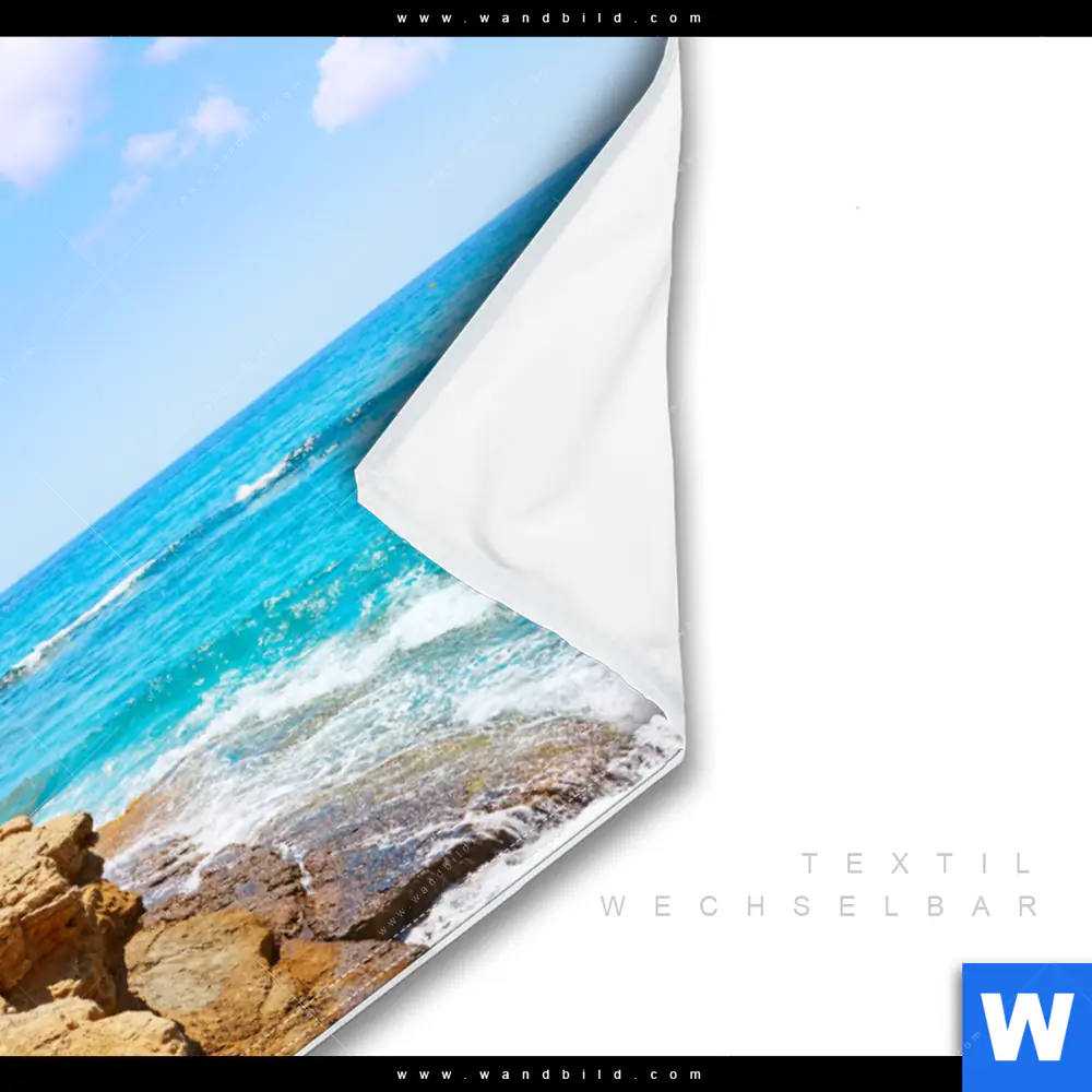 Wechselmotiv Textil | Wellenrauschen und Felsenklippe | Querformat
