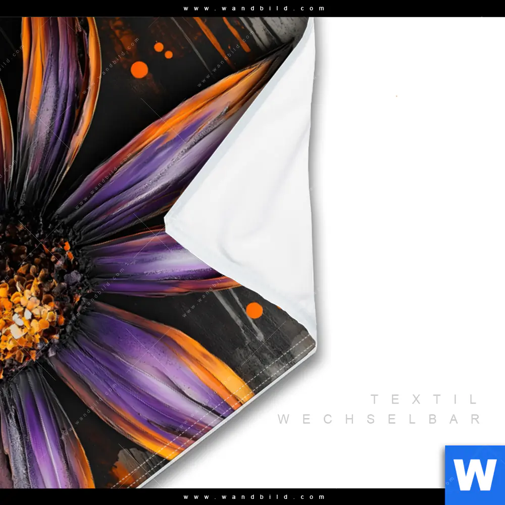 Wechselmotiv Textil | Abstrakte Blume in Orange & Lila | Hochformat