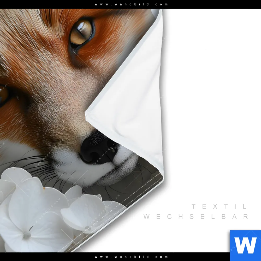 Wechselmotiv Textil | Friedlicher Fuchs und Blumen | Quadrat