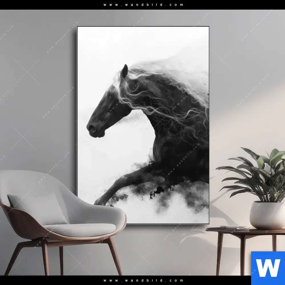 Wechselmotiv Textil | Schwarzes Pferd voller Energie | Hochformat