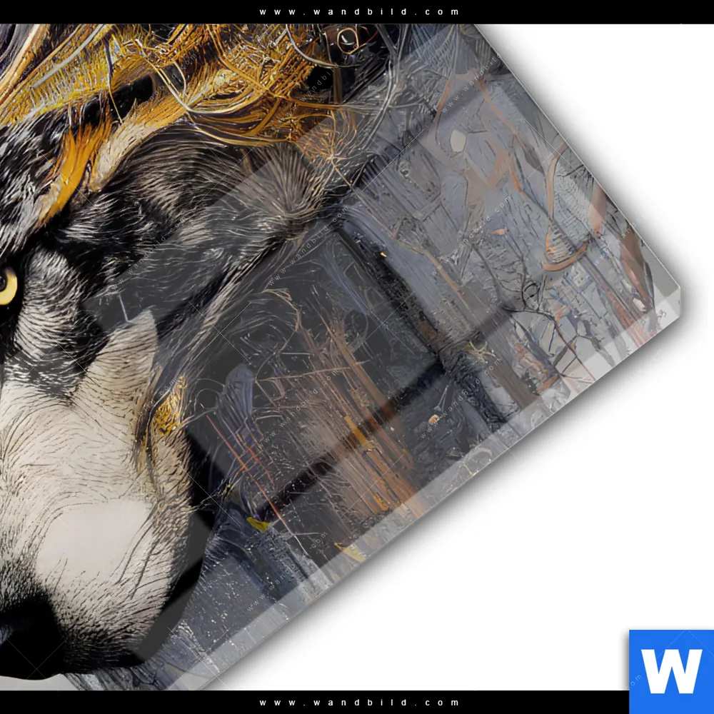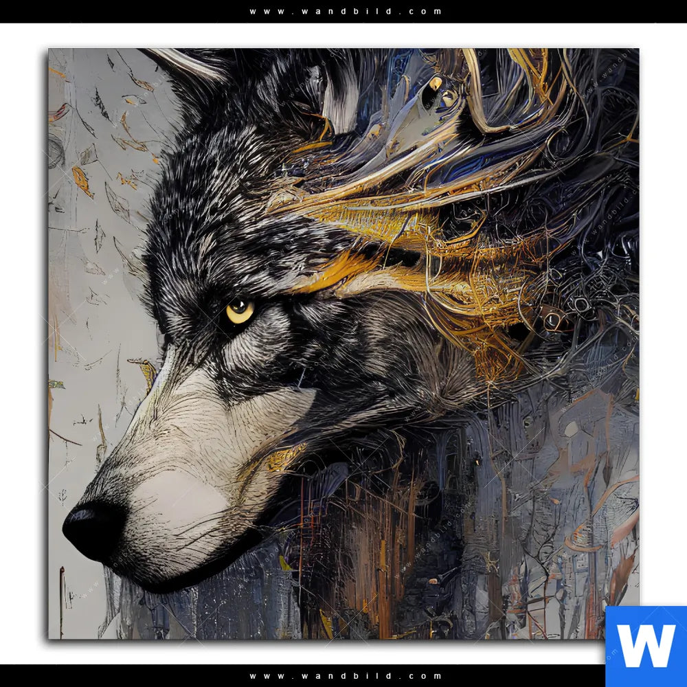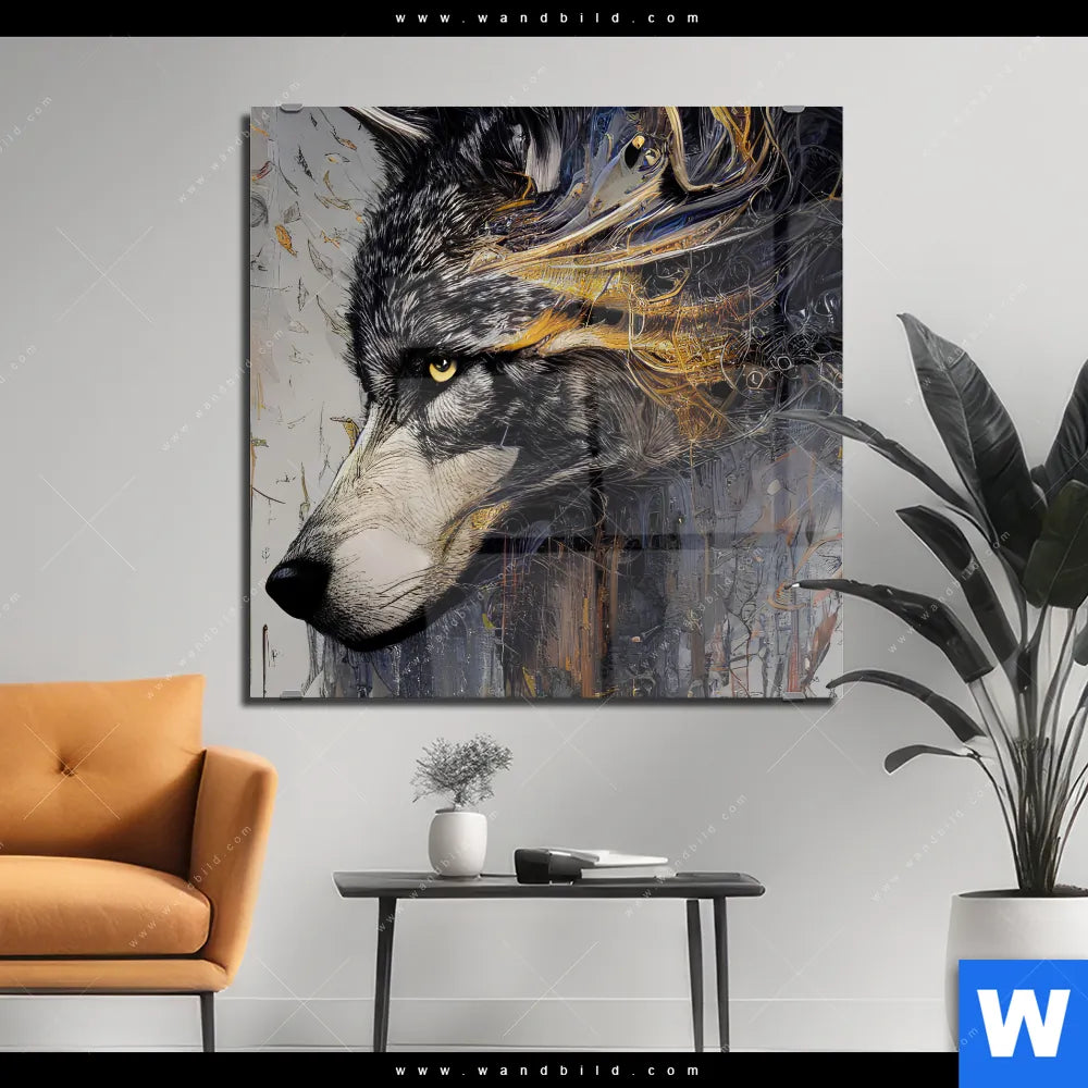 Acrylglasbild | Abstrakter Wolf in Gold und Grau | Quadrat