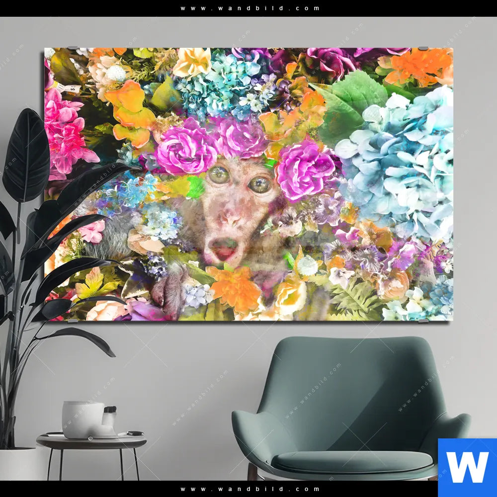 Acrylglasbild | Äffchen & Blumen | Querformat