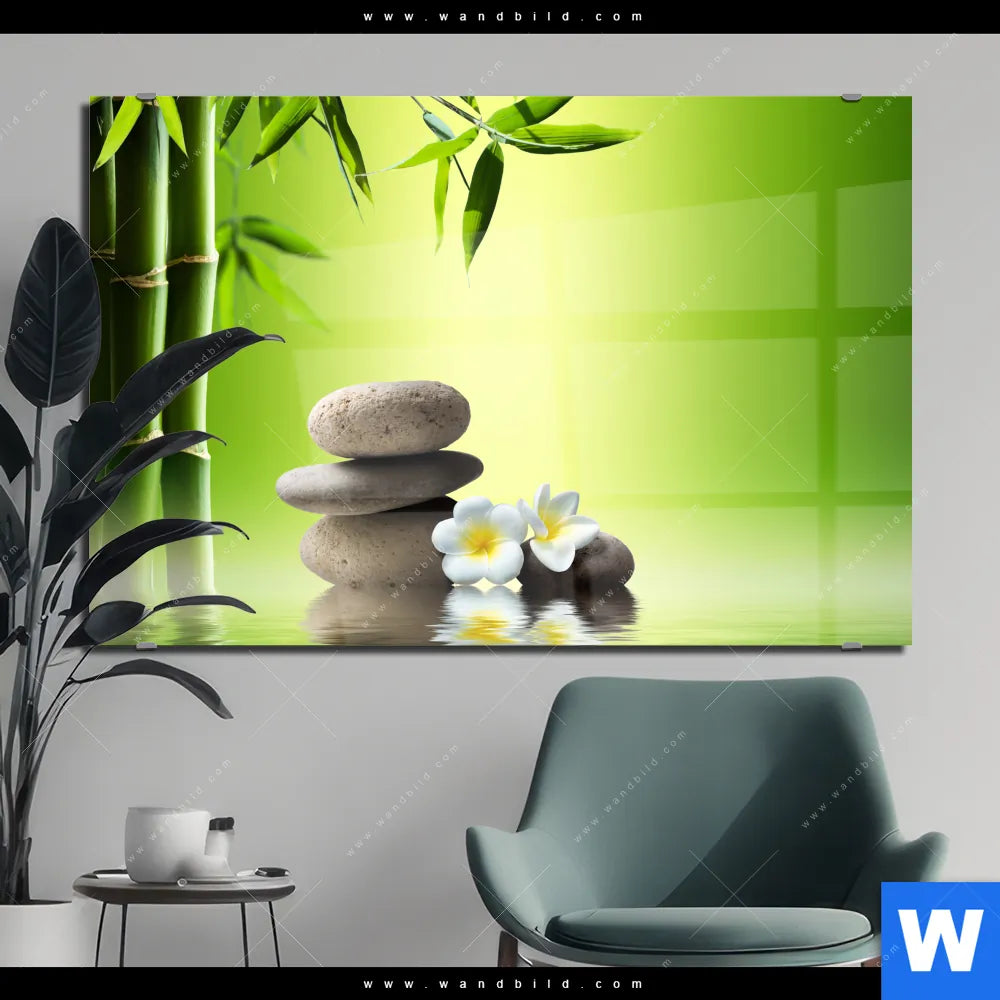 Buddha - Feng Shui, Blumen - Botanik Glasbild inkl. vormontiertem Rückrahmen