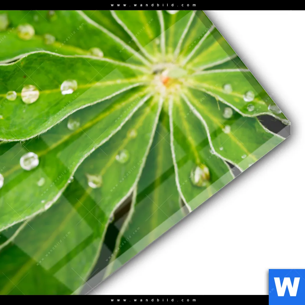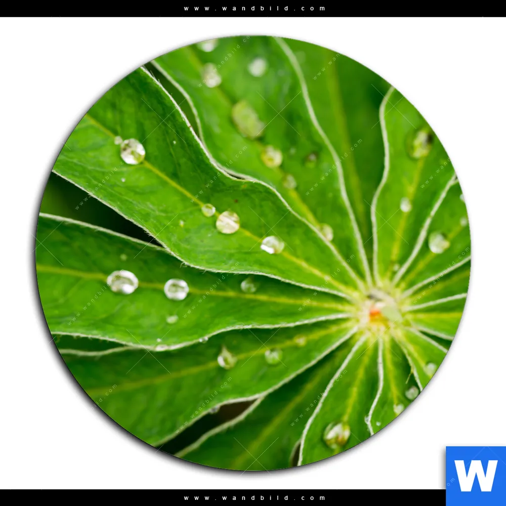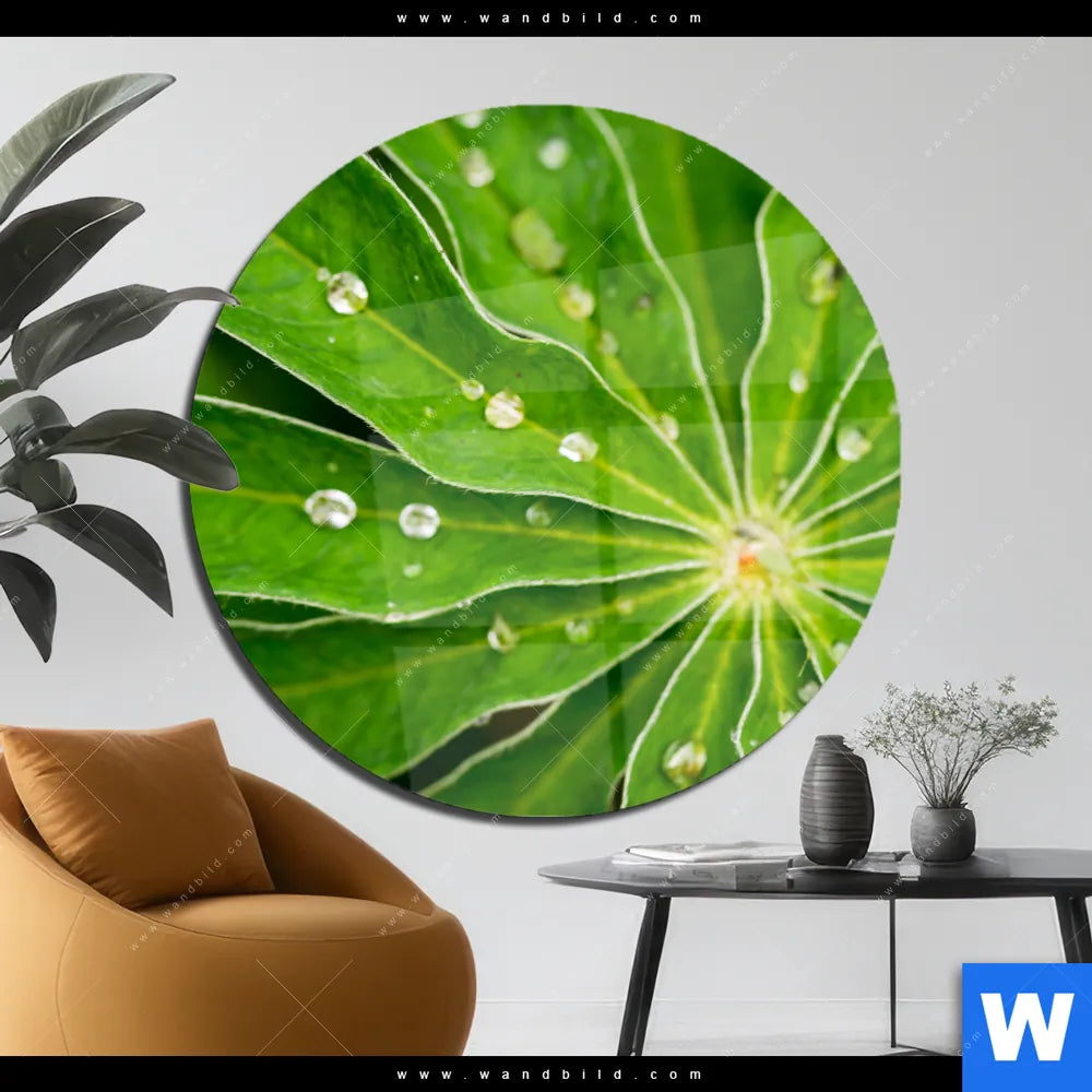 Acrylglasbild | Blatt mit Wassertropfen | Rund