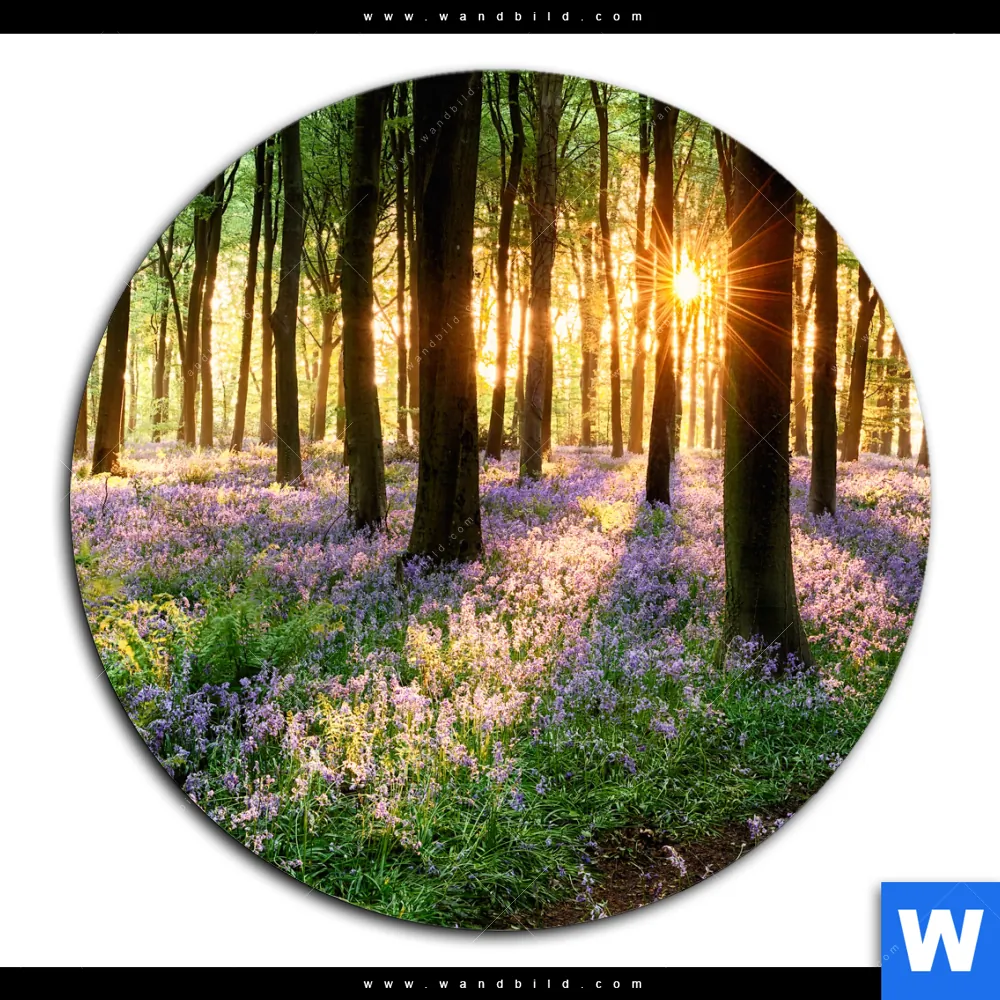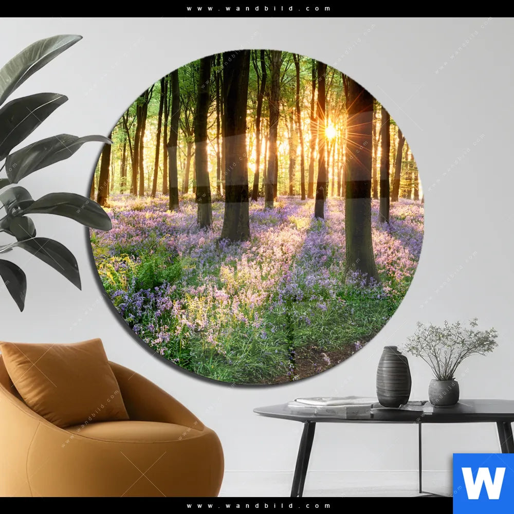 Acrylglasbild | Blühender Wald bei Sonnenaufgang | Rund