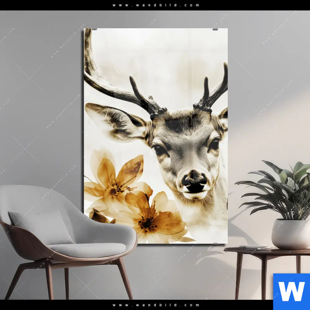 Acrylglasbild | Blütenpracht trifft Geweih | Hochformat