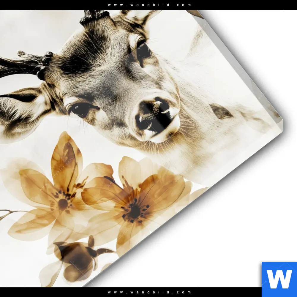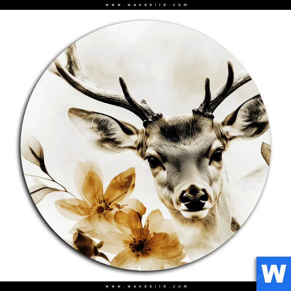 Acrylglasbild | Blütenpracht trifft Geweih | Rund